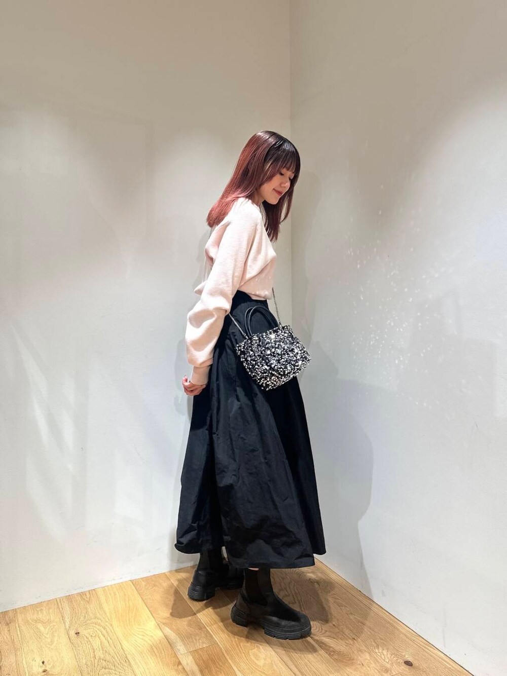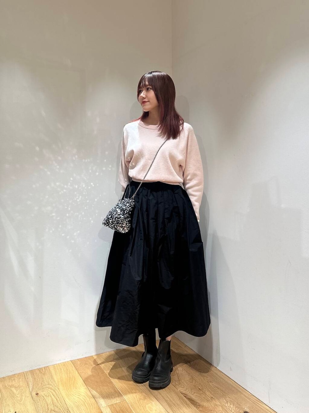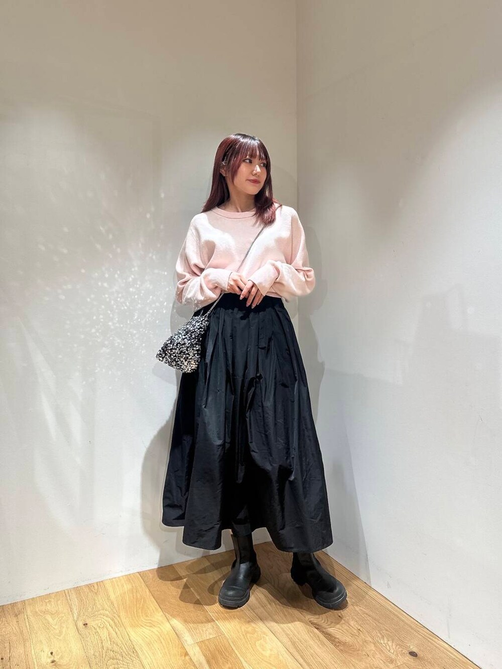 スカートがボリューム感があるのでトップスはコンパクトなニットで合わせてみました