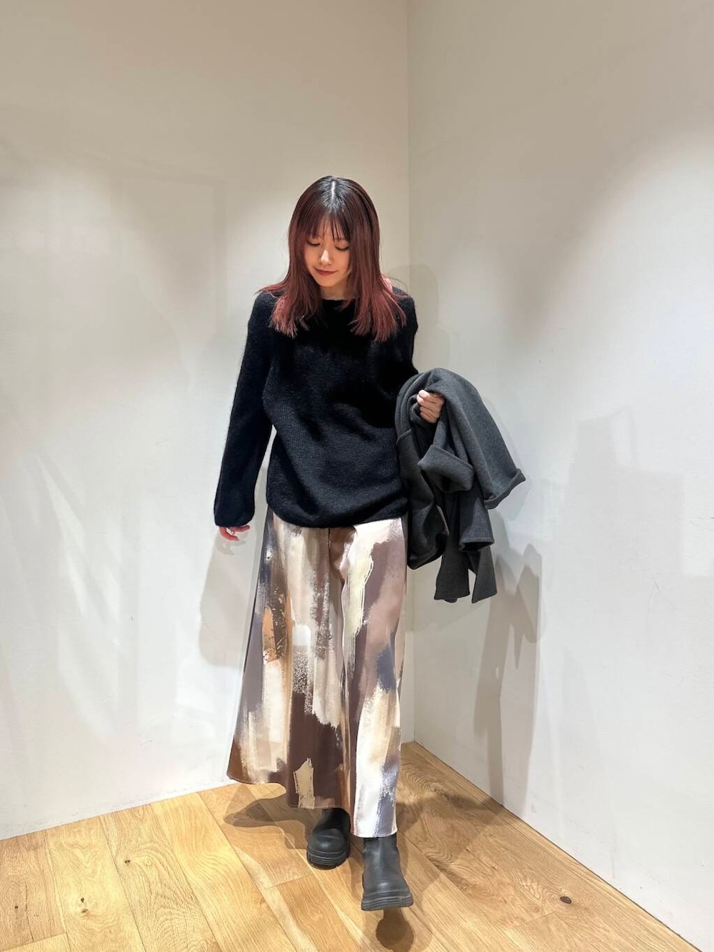 オーバーサイズなアイテムに柄スカートの組み合わせが可愛いです🙂♡