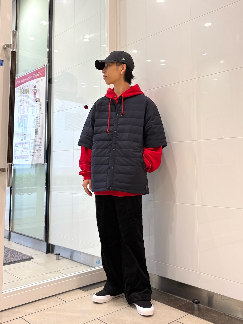 今回はオーバーサイズのフーディとハーフスリーブのダウンです。