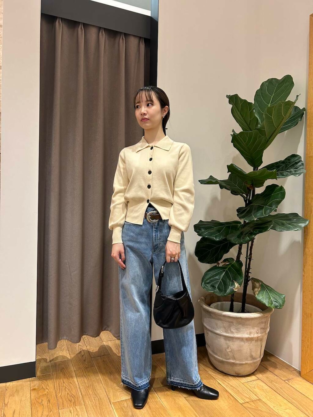 低身長さんでもスタイル良く着こなせるようなショート丈&裾が止まってくれるデザインになっております
