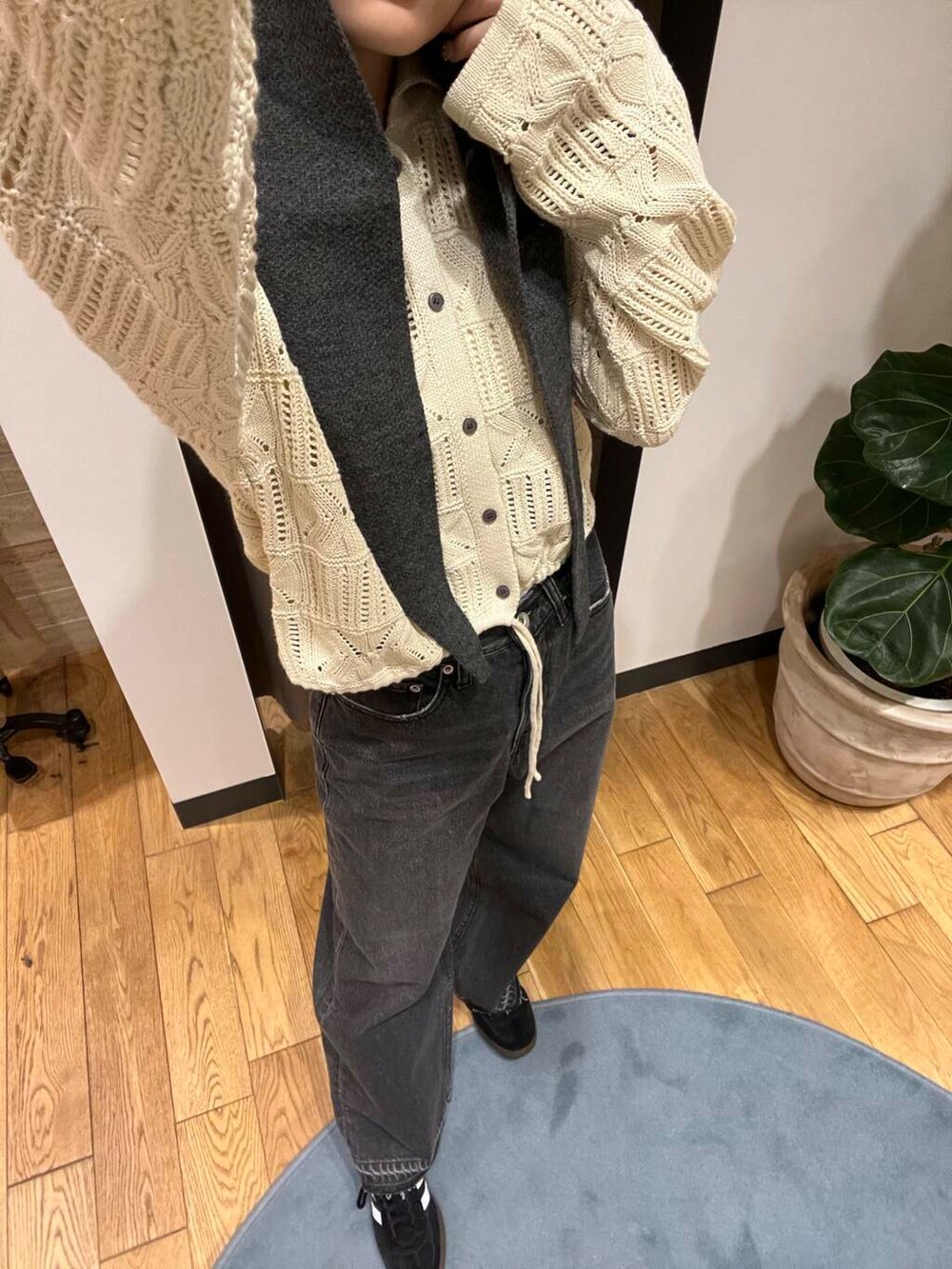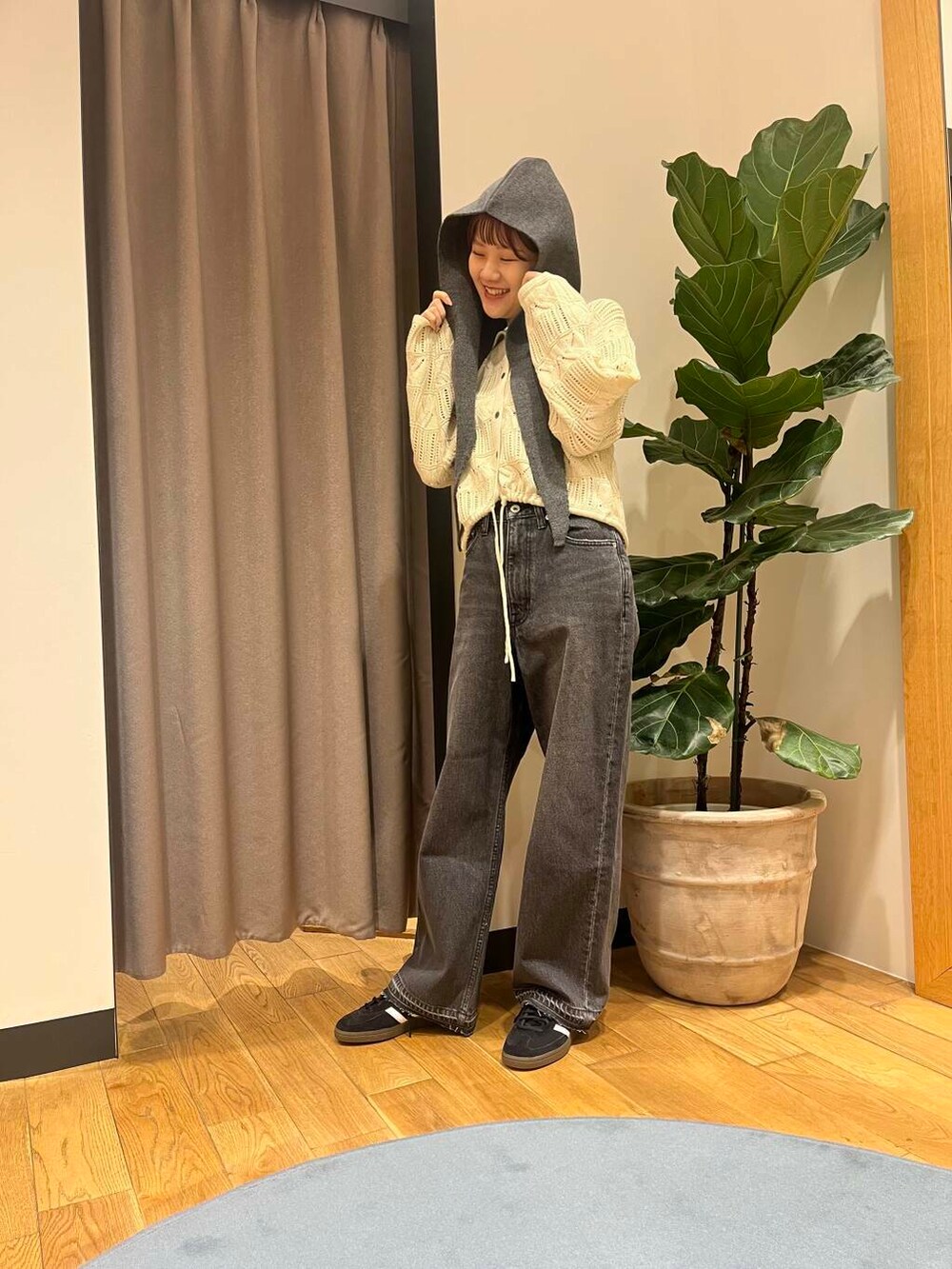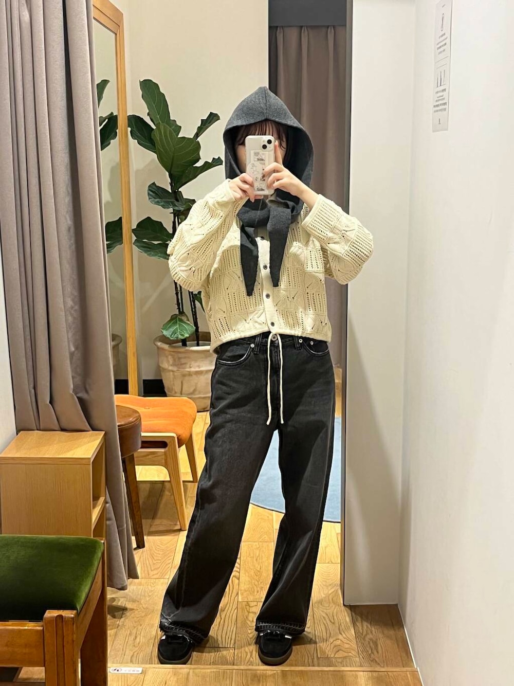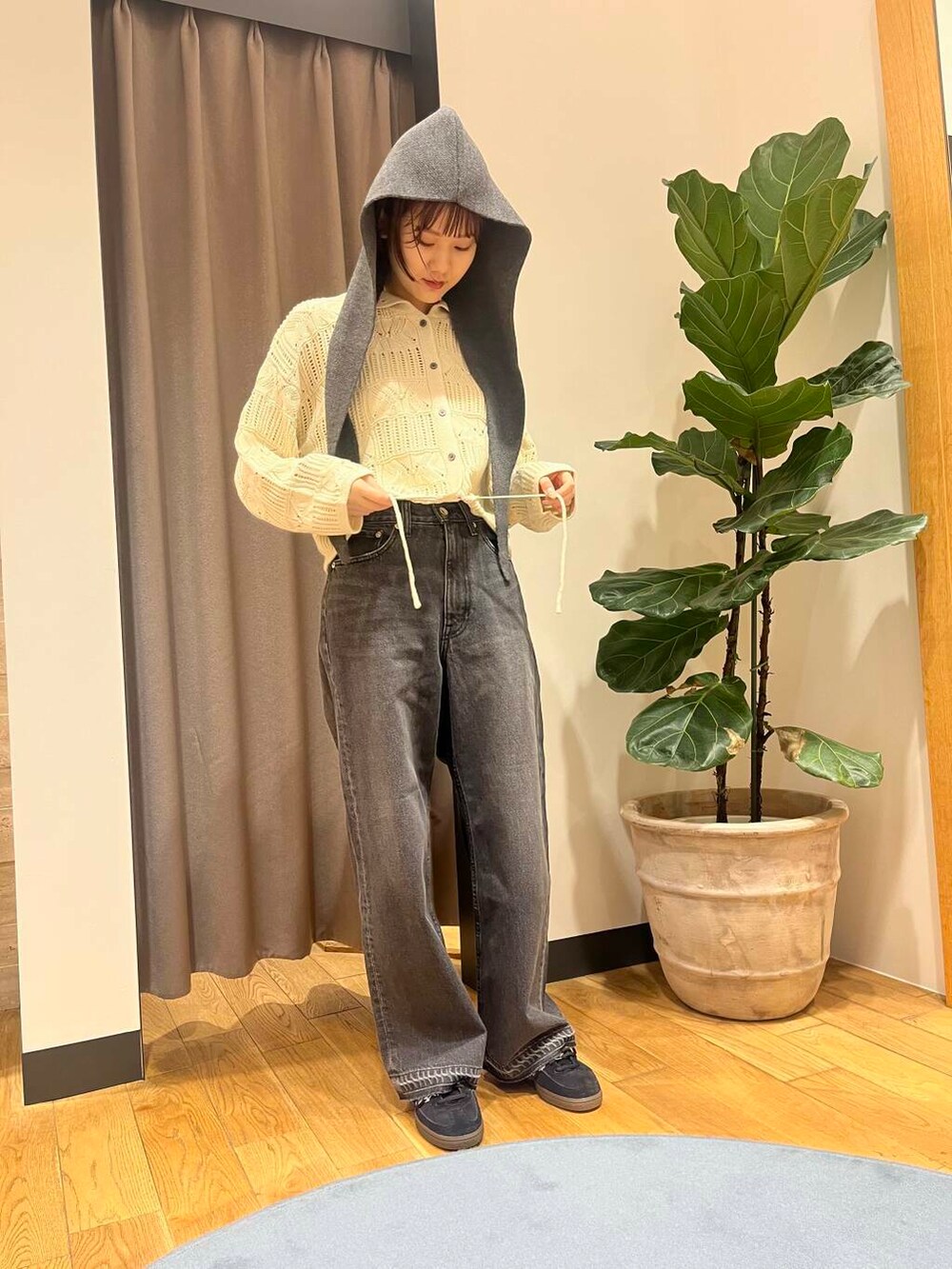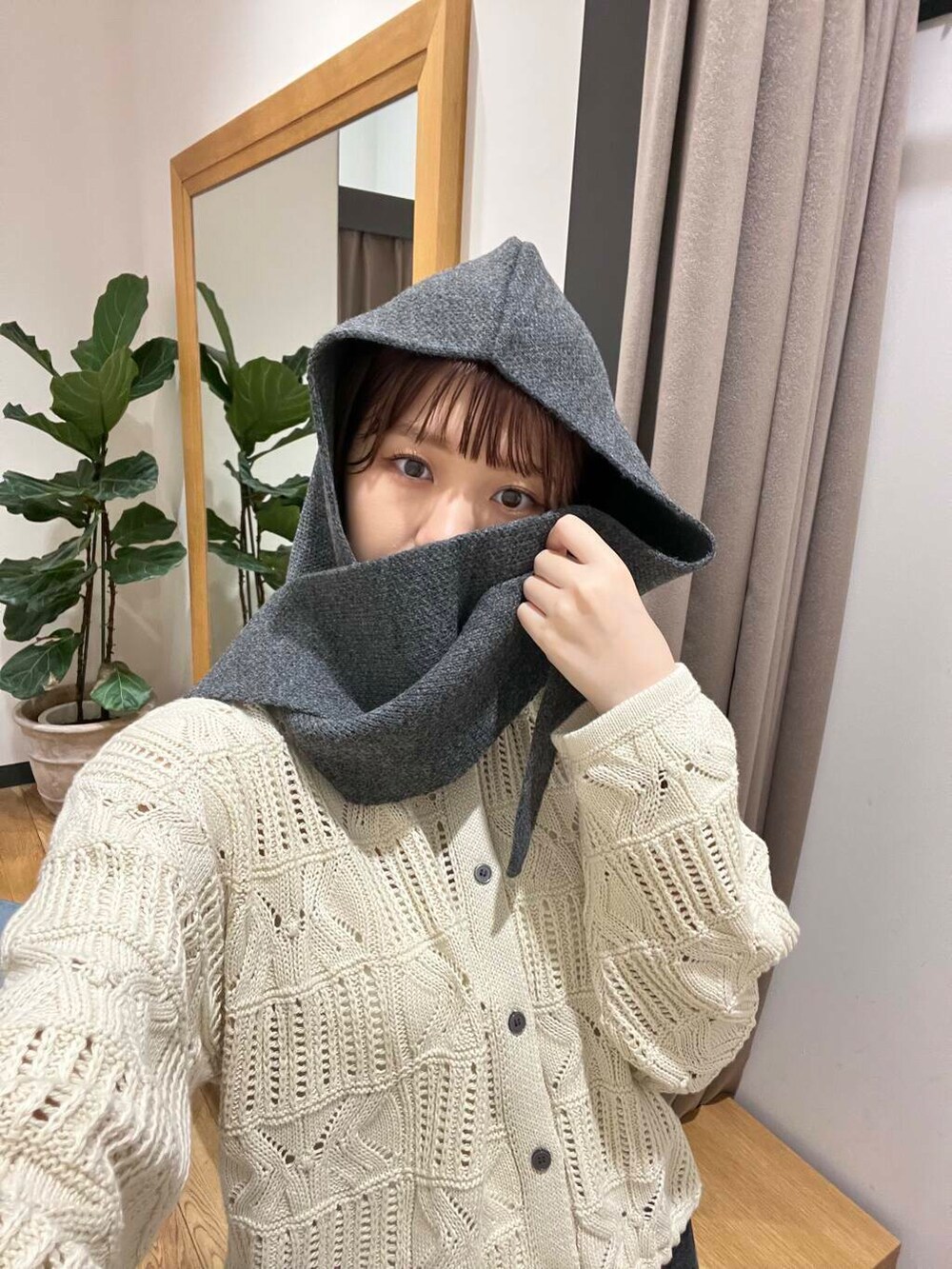 フードマフラーにニット🧶もう秋ですね~🍂