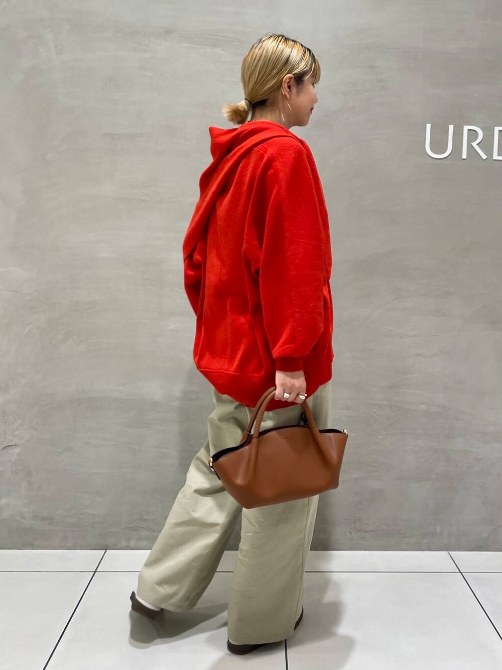 赤色がインパクトあるので、他のアイテムは重くならないようにブラウンやライトグレーの小物を選びました!