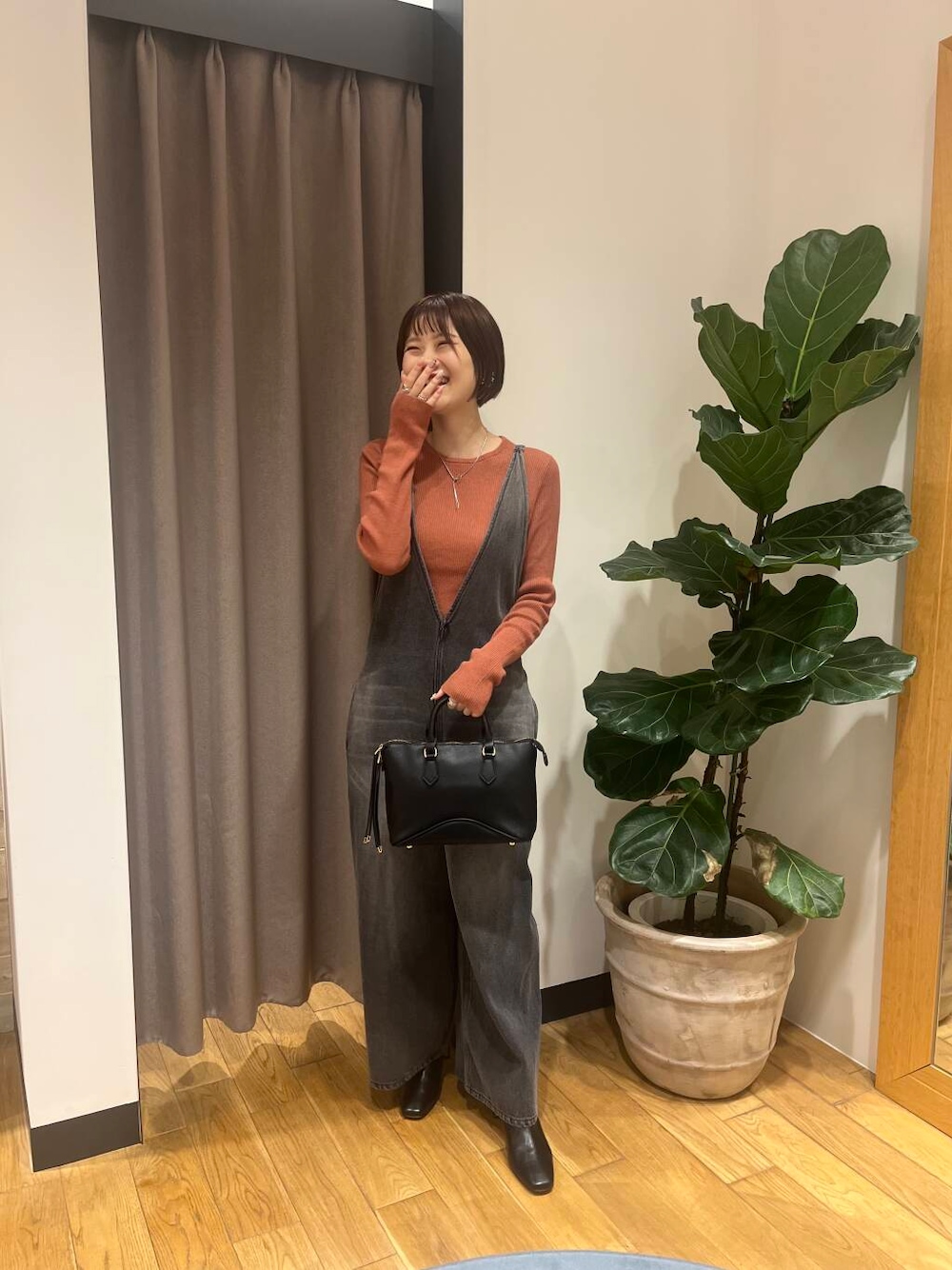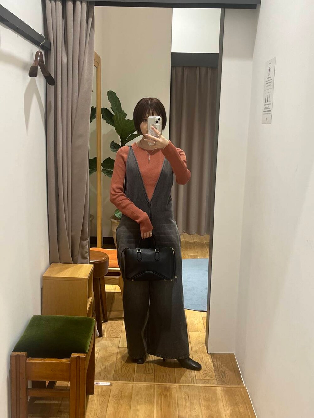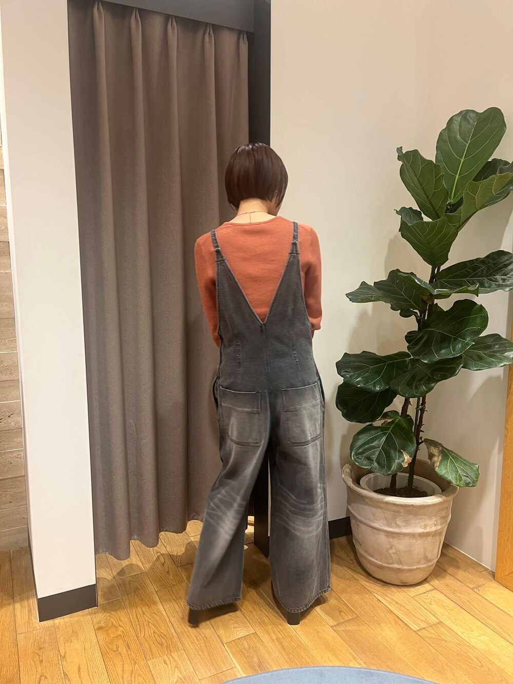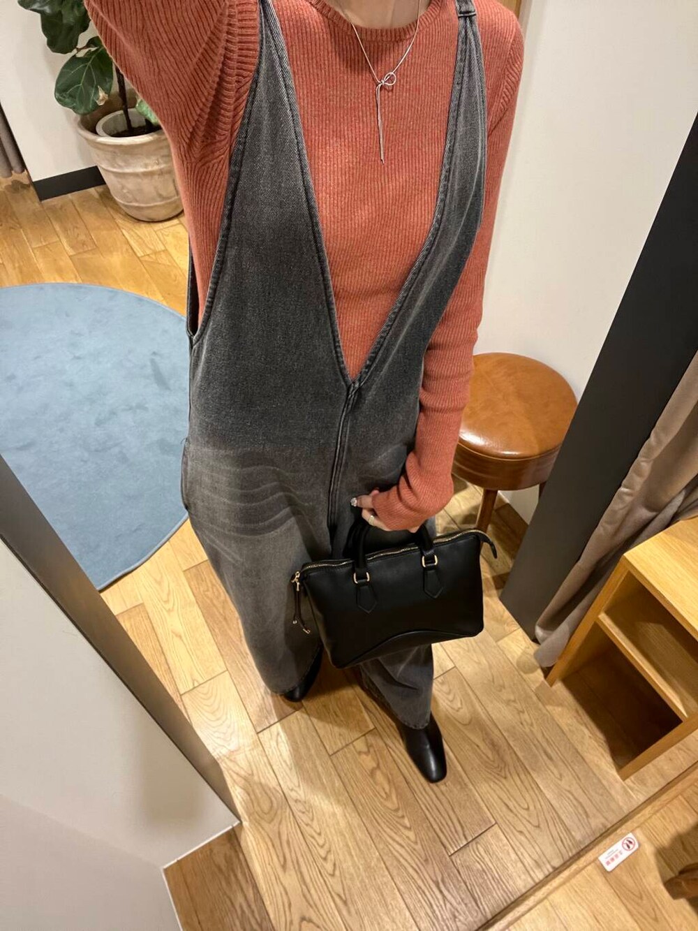 デニムのサロペットはゆったりしたシルエットなので、ニットなどをインナーに着てもごわつかず着ていただけます☺️