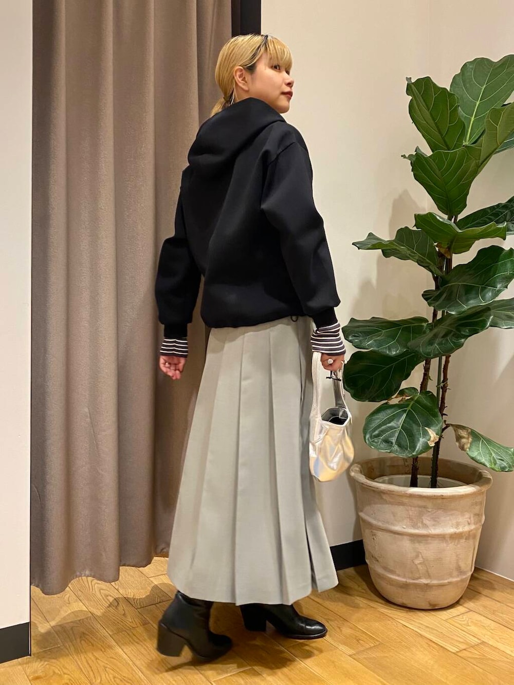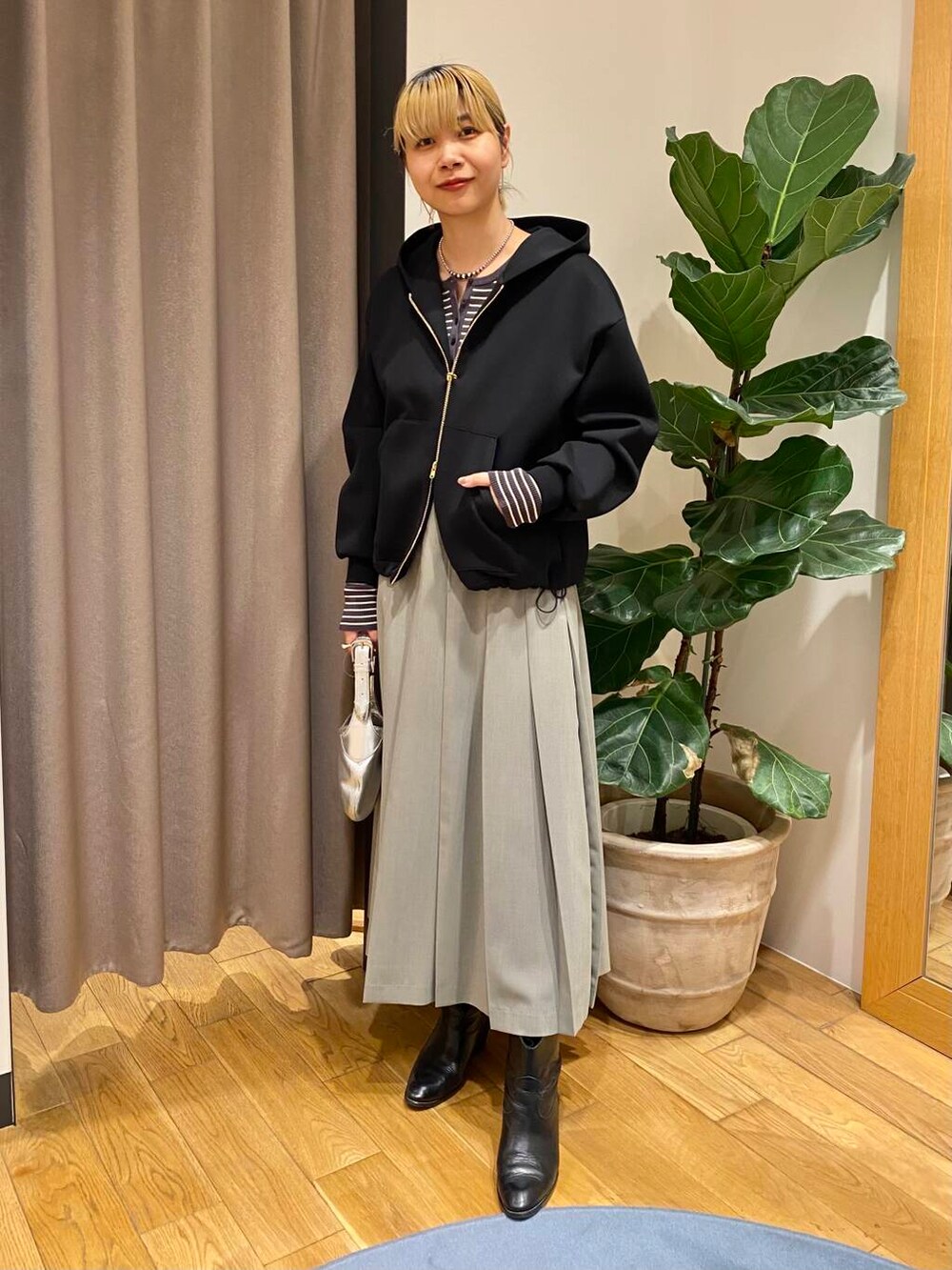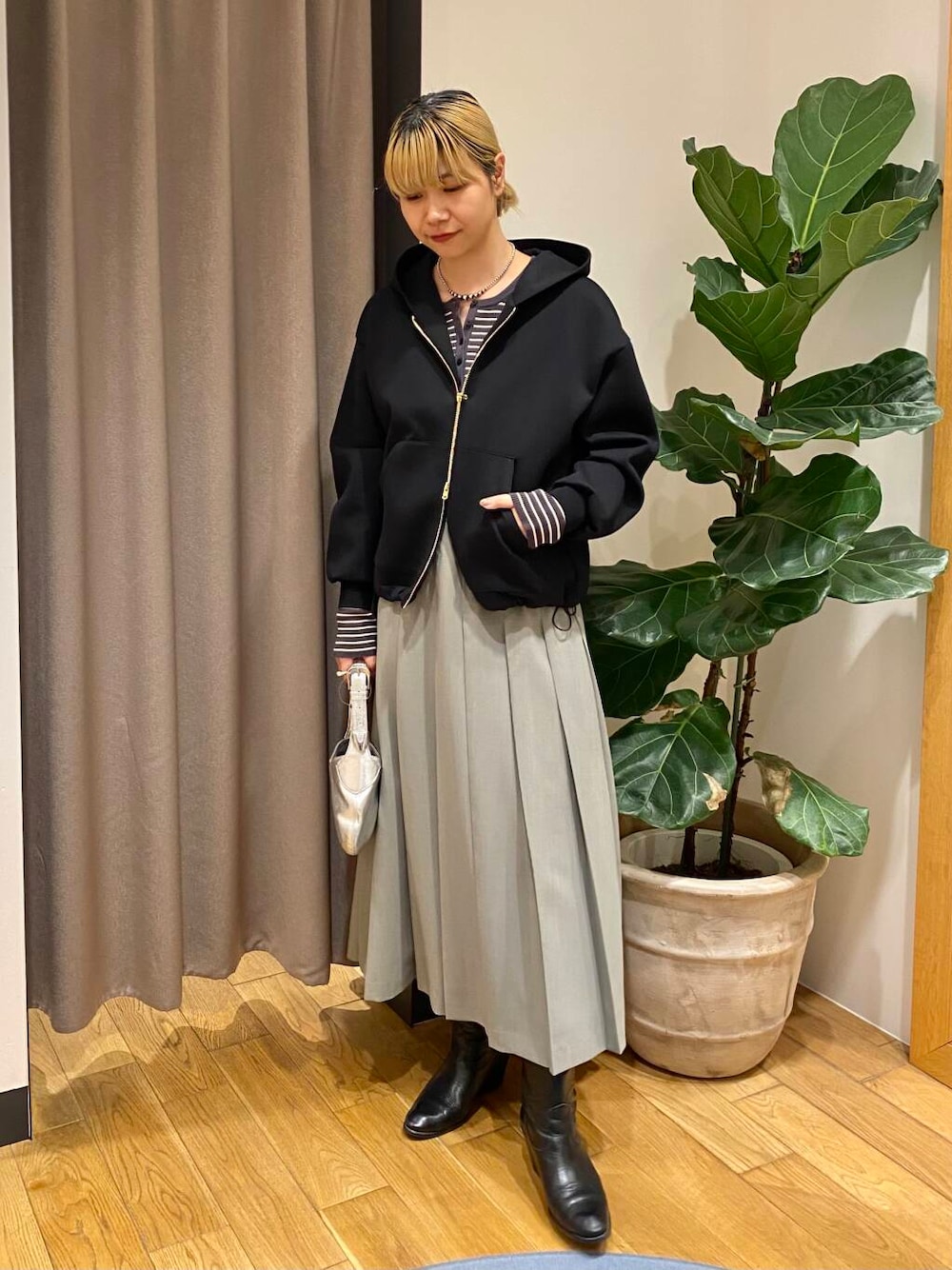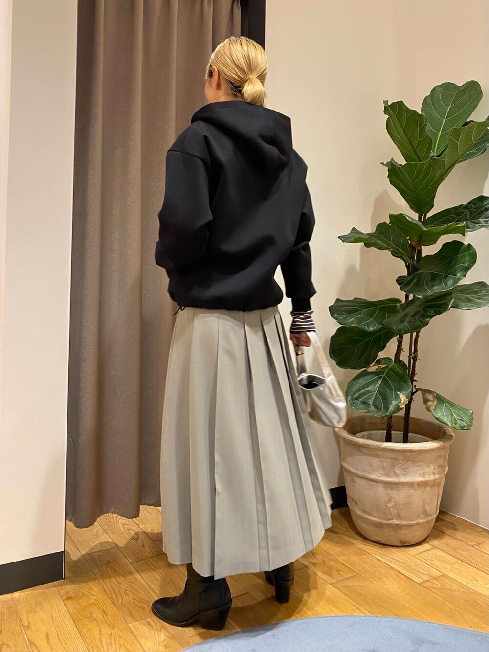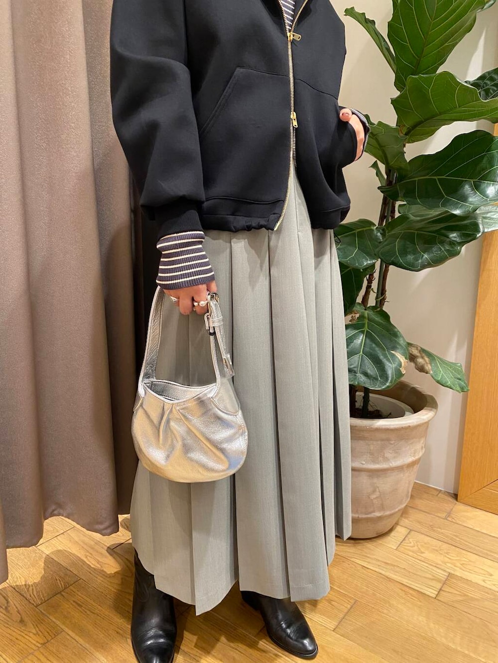 下はカジュアルになりすぎないよう、プリーツスカートを合わせました!