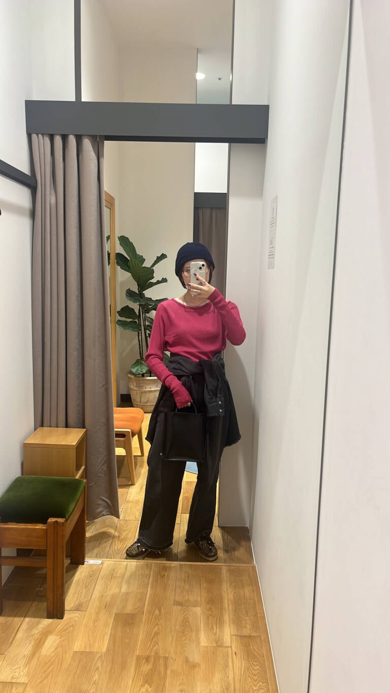 全体的に暗めな印象なので、差し色でピンクを入れました🩷