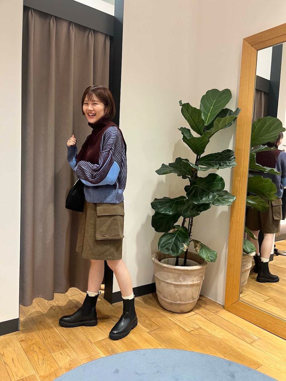 ニットは丈が程よく短いため、ボトムスとのバランスも取りやすく、身幅もゆったりしているので体型を気にされる方でも安心して着ていただけます!☺️