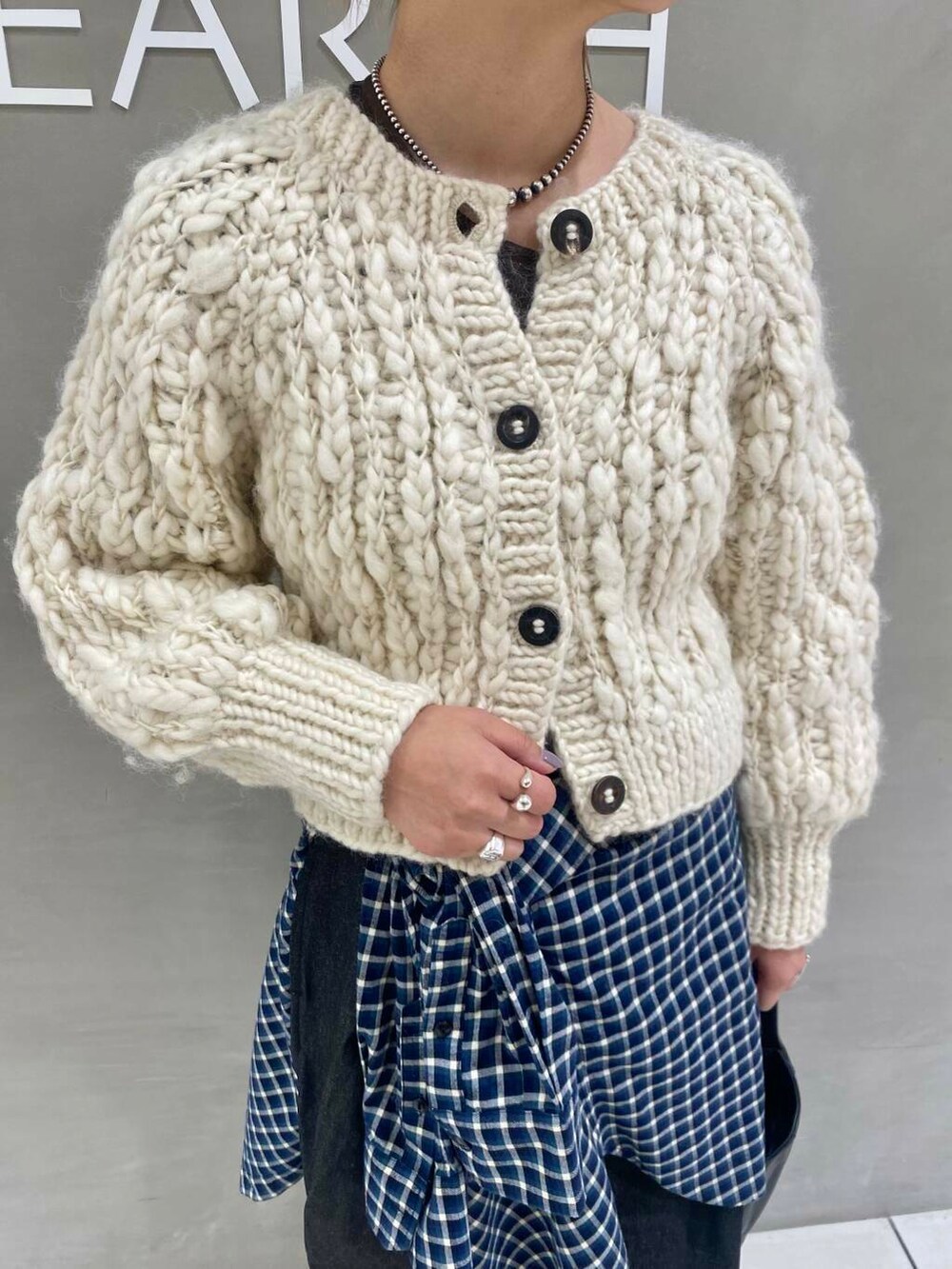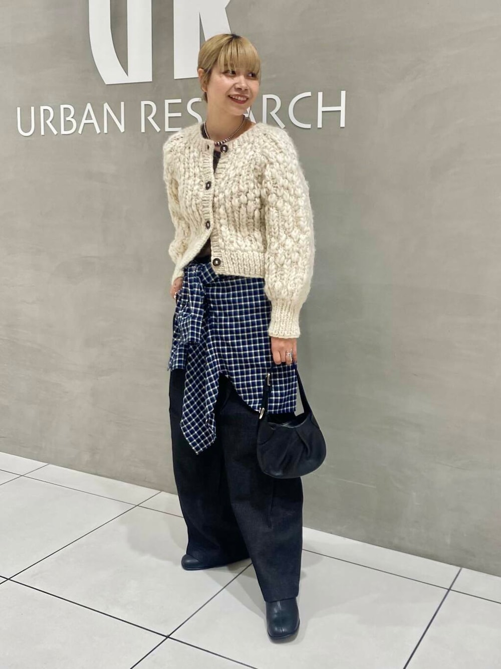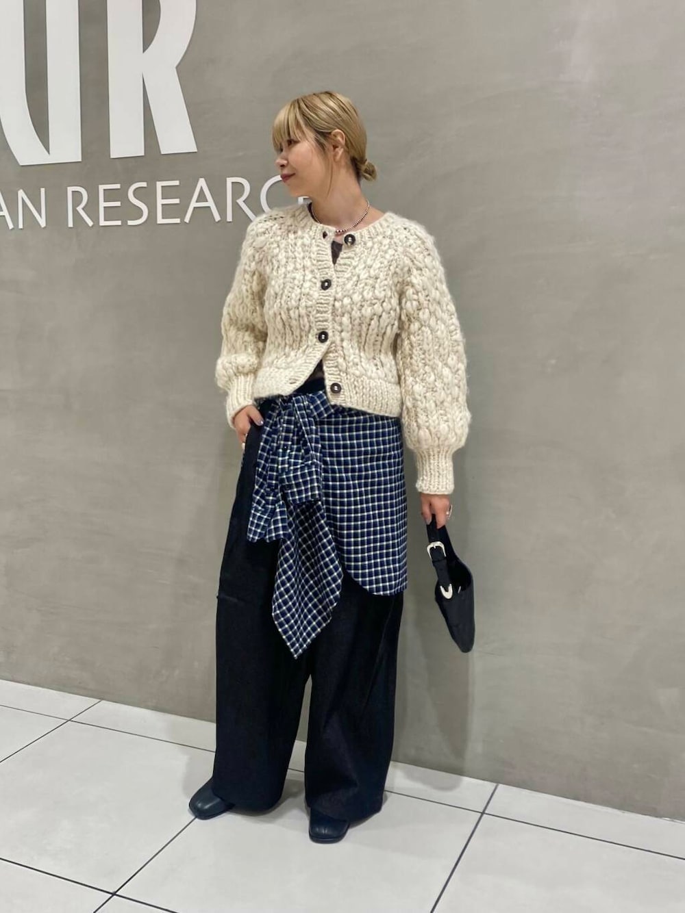ニットはボリュームがありますが、ショート丈なのでボトムスもボリュームのあるパンツを選んで今っぽくしてみました!