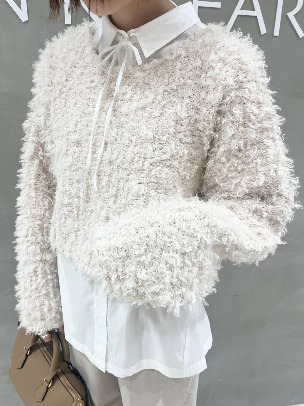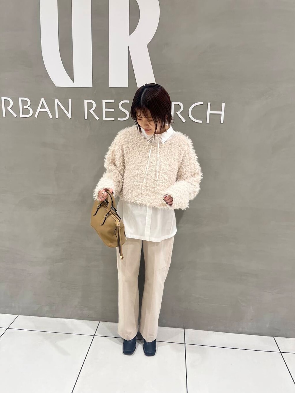 インナーで使用しているシャツはリボンの取り外しができるので、カジュアルやキレイめ、両方の面でお使い頂けます!