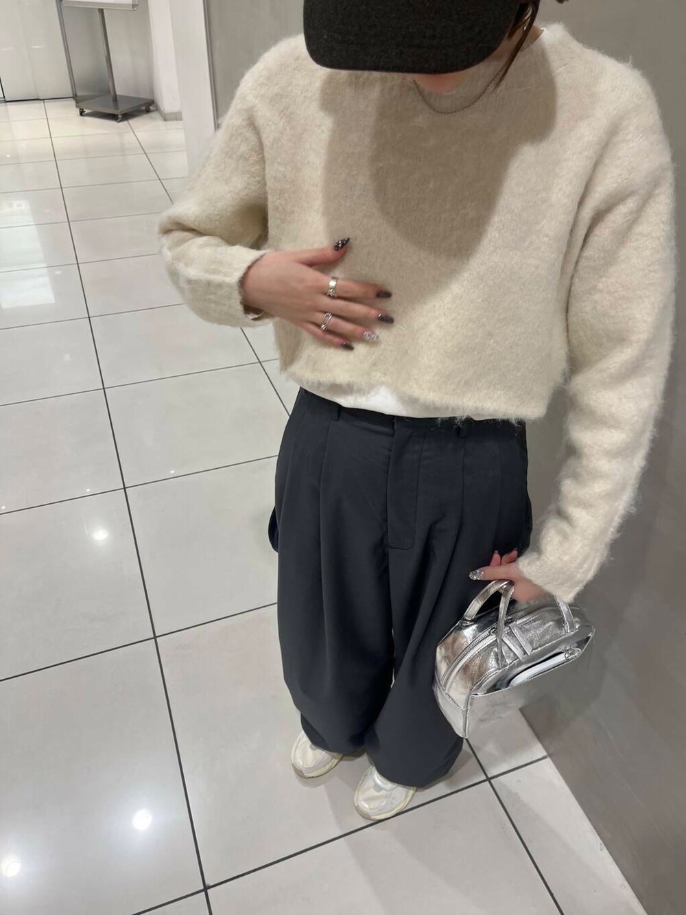 毛が入っているので、ニット一枚でも暖かく着ていただけて、これからの季節ならタートルネックやリブのインナーなどを中に着ても可愛いです🩷🩷