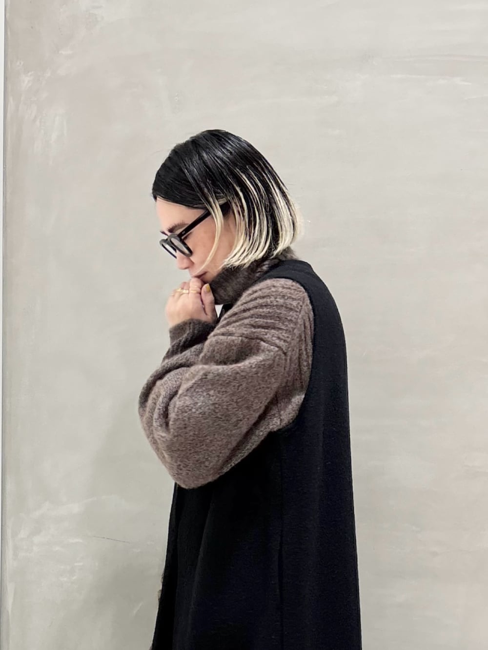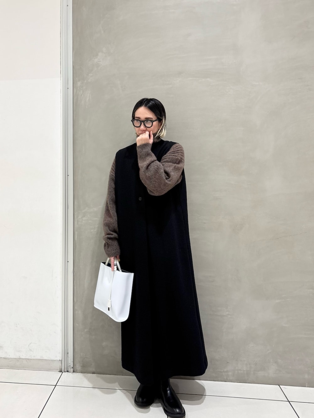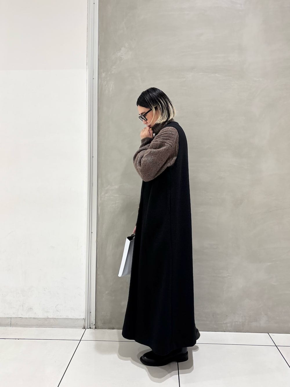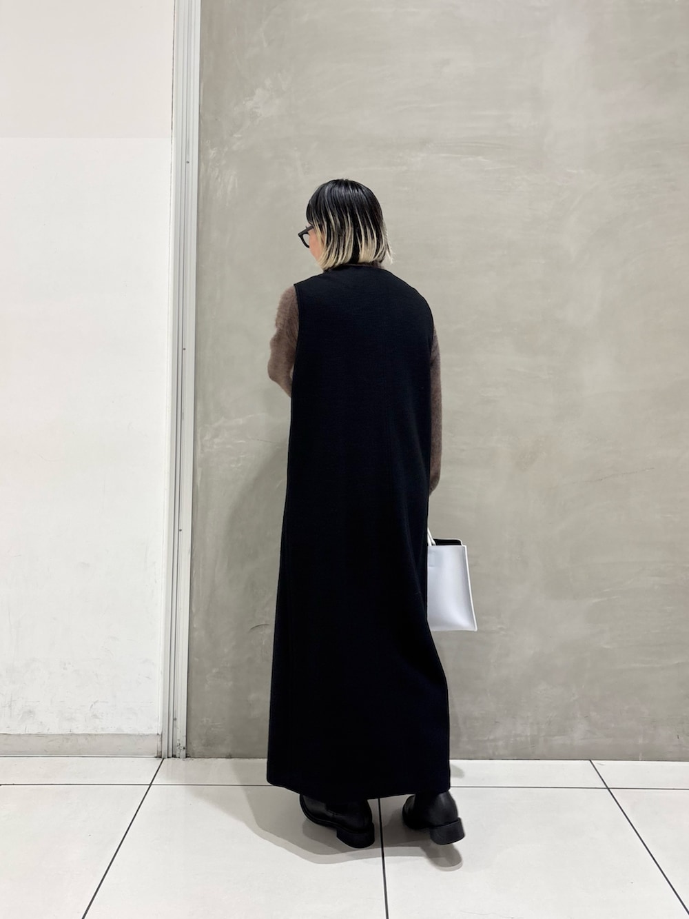 【かぐれ】の体型を拾いにくい程よい厚みのウールタックジャンパースカートも温かく、ミニマルな雰囲気でカジュアルにもフォーマルにも対応ができます🙂↕️👍