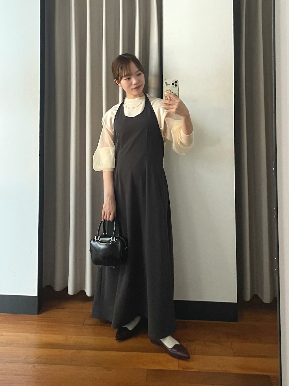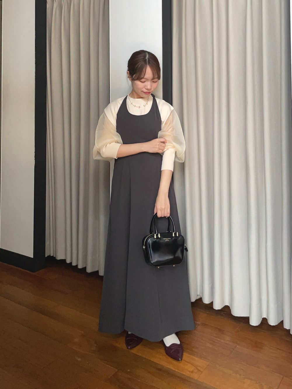 ワンピースはドライタッチ素材で、サラサラと着やすくインナー次第でカジュアルとキレイめと両方使えるアイテムです!シワになりにくくお家でお手入れができるのもオススメポイントです!✨