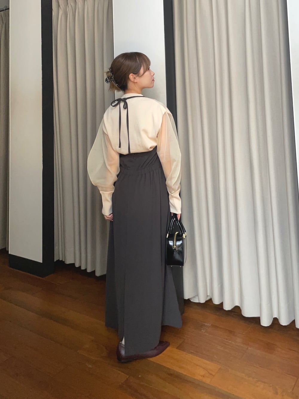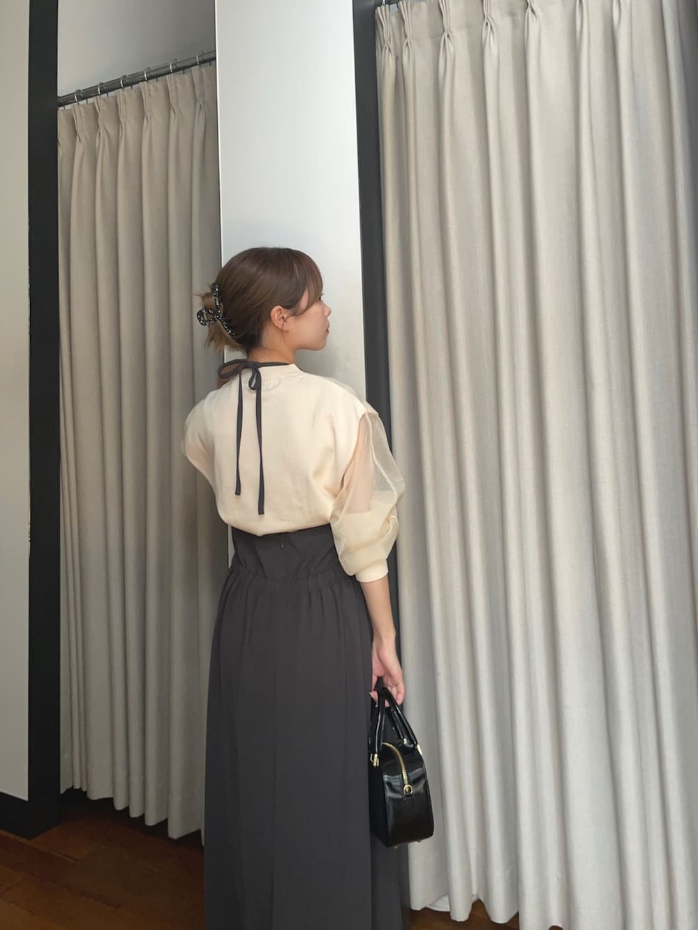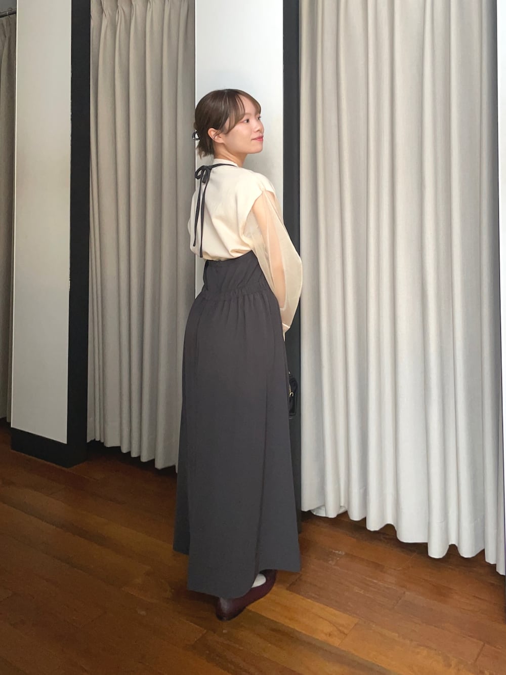 インナーはLAATOの袖がシアーのアイテムを着てみました!リブが付いているので捲ると、きちんと止まってくれて、カジュアルなパンツやデニム合わせでも可愛いトップスです!