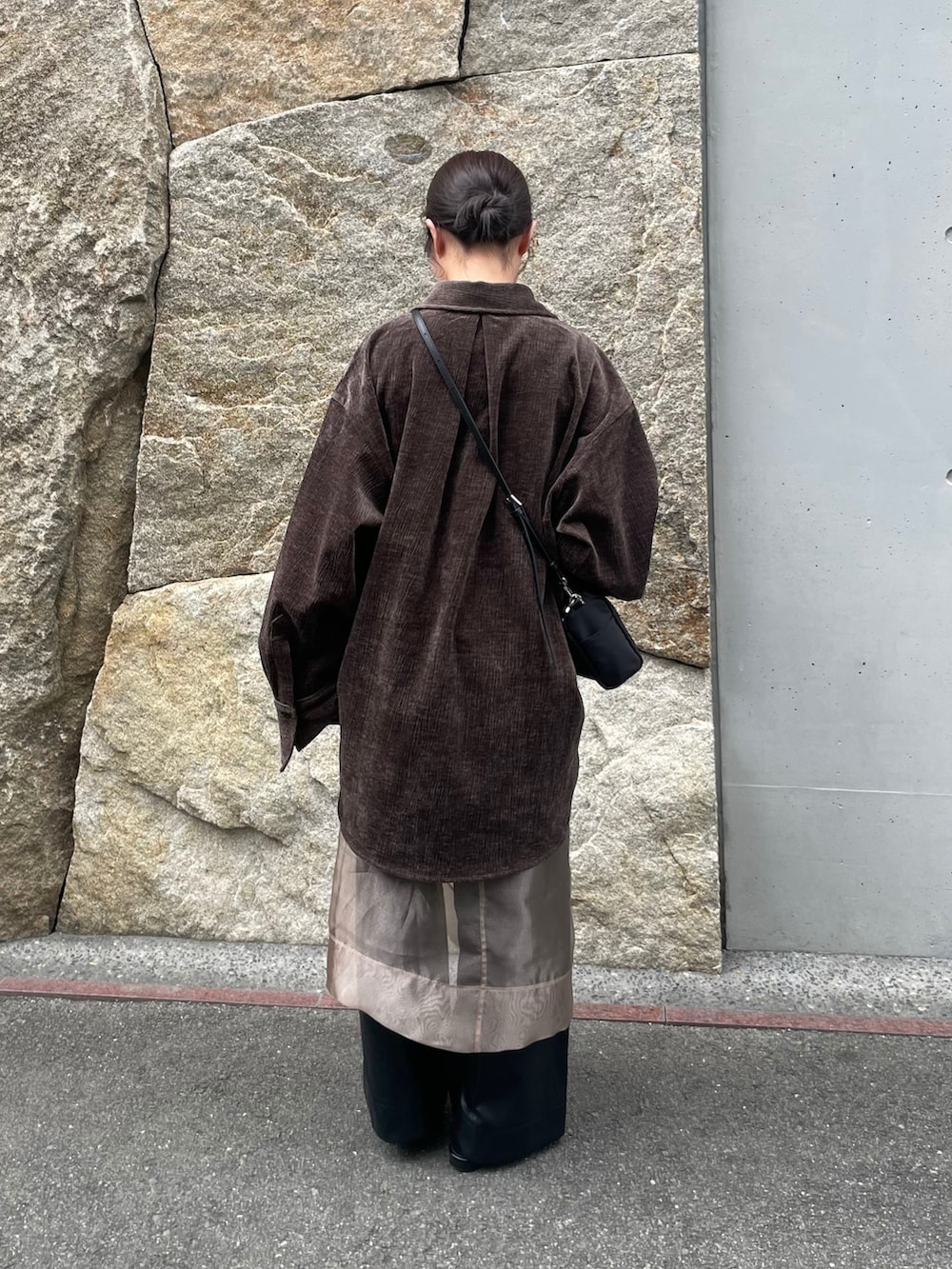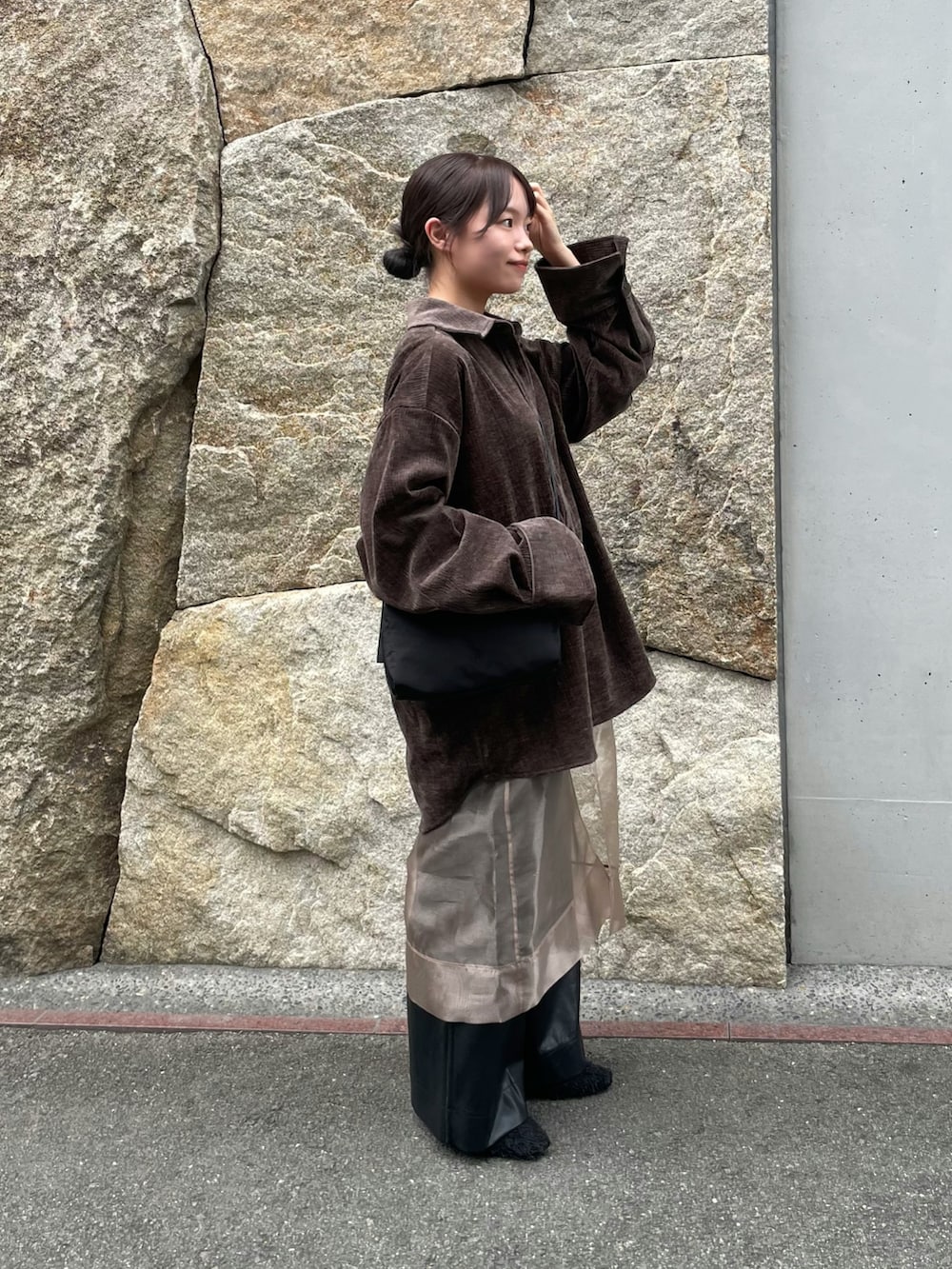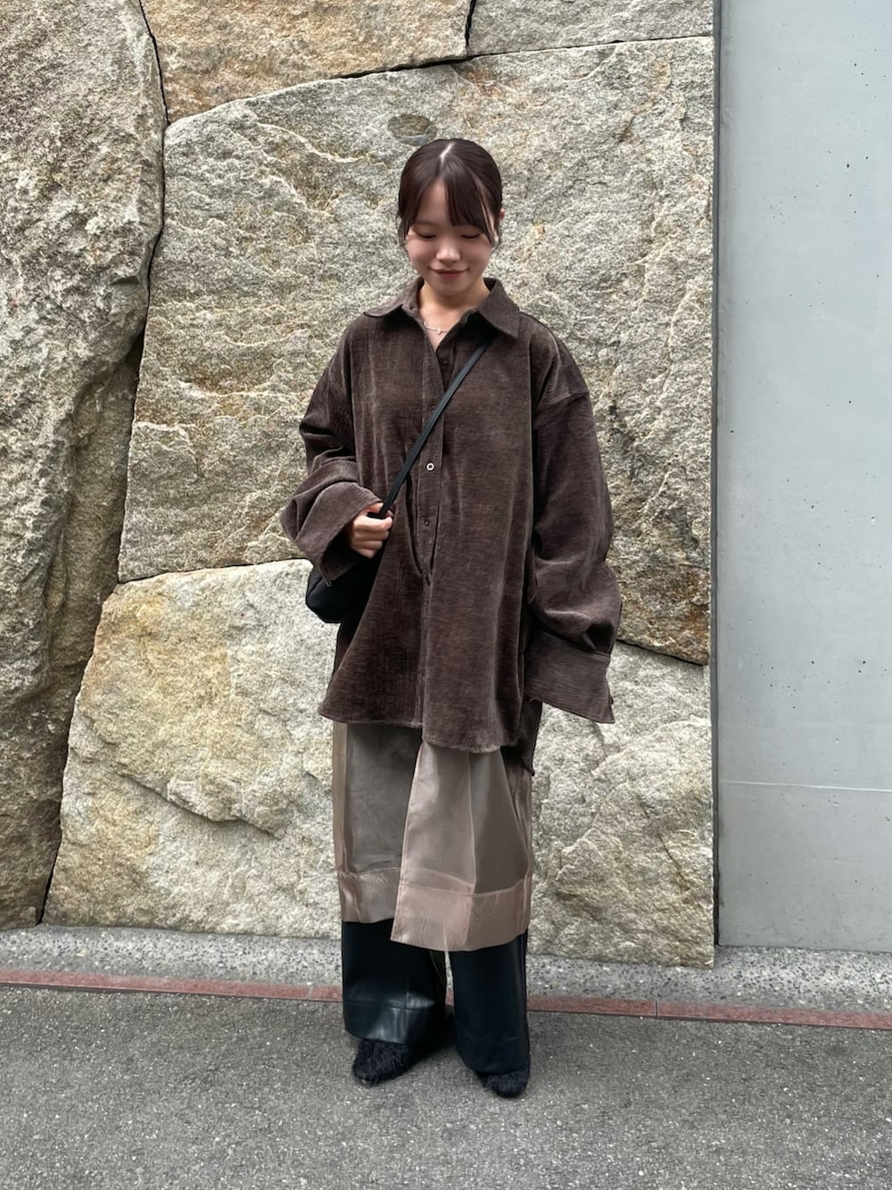 トップスは羽織としても使えるLAATOのベロア素材のアイテムです!ゆったりな着丈と太めな袖がシャツのポイントになりますよ✨店頭でも大人気のアイテムなので、是非見に来て欲しいです✨