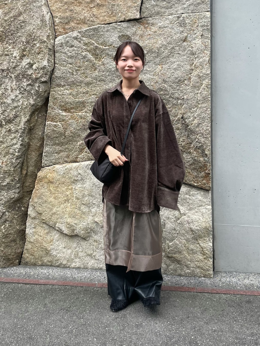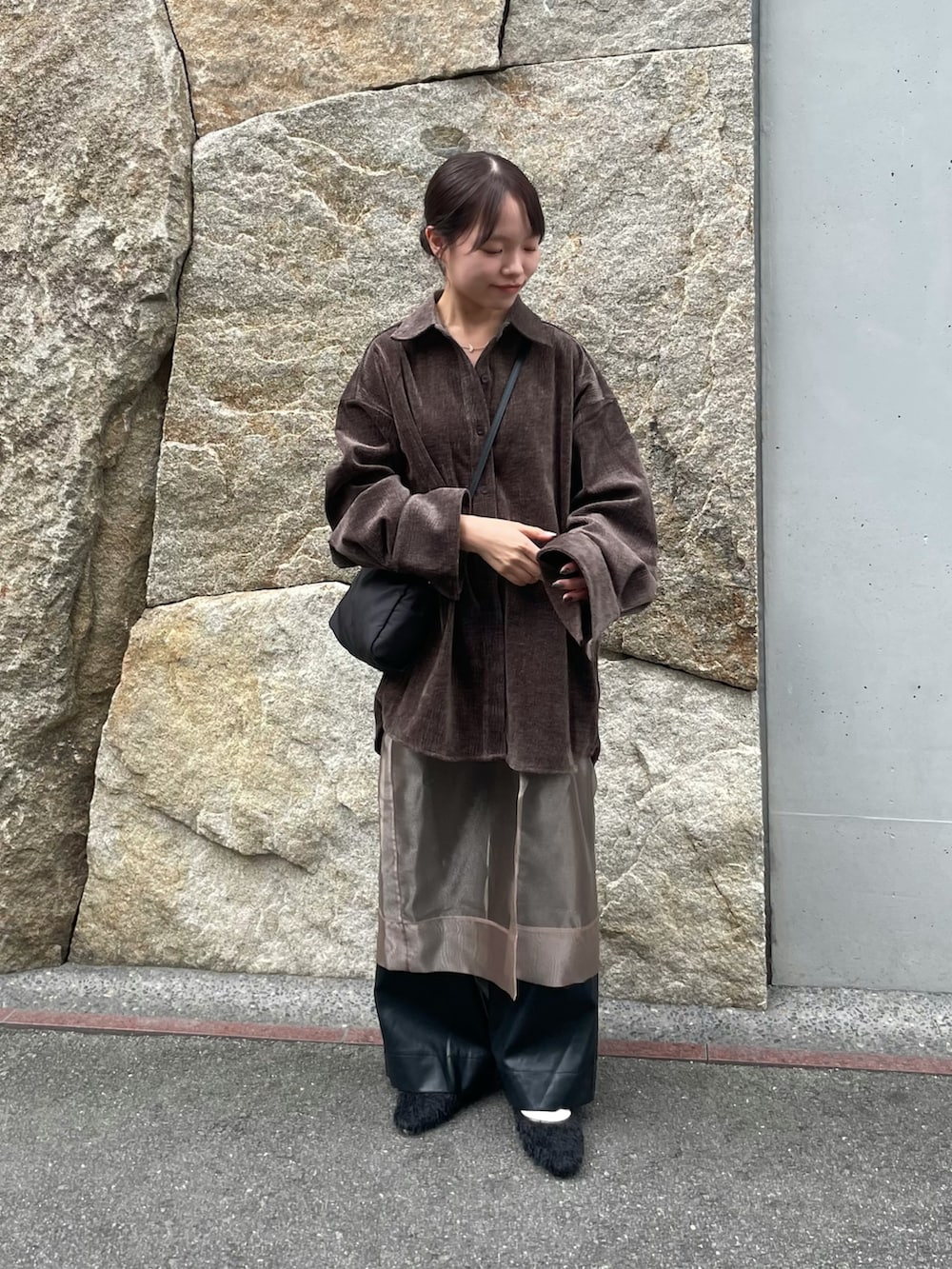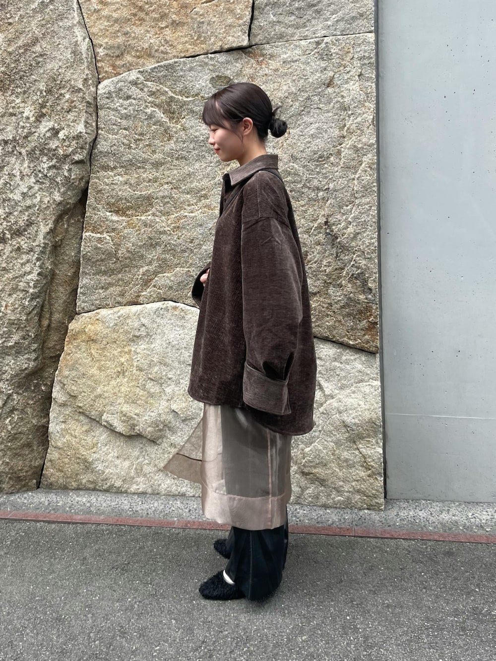 トップスは羽織としても使えるLAATOのベロア素材のアイテムです!ゆったりな着丈と太めな袖がシャツのポイントになりますよ✨店頭でも大人気のアイテムなので、是非見に来て欲しいです✨