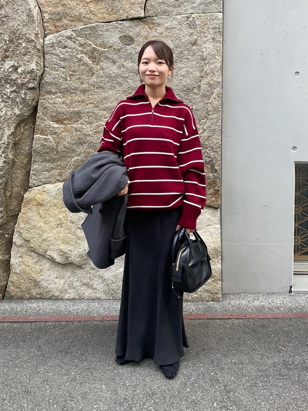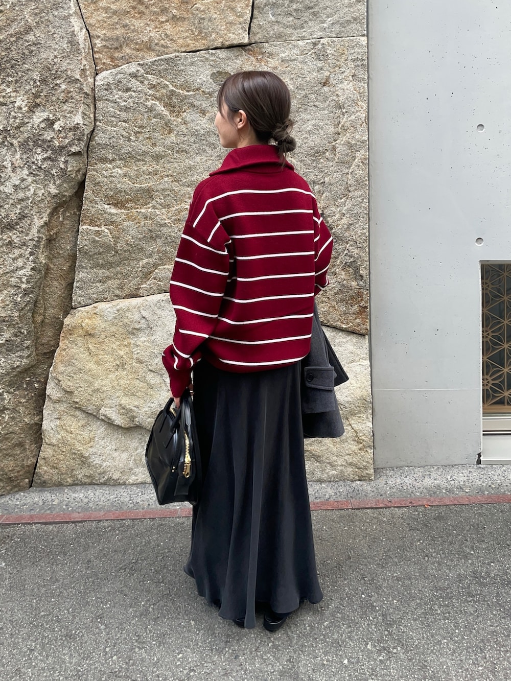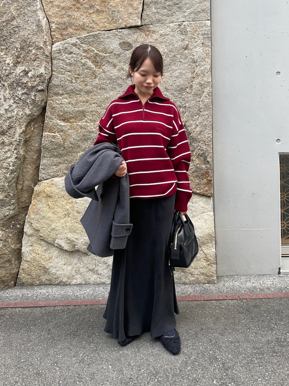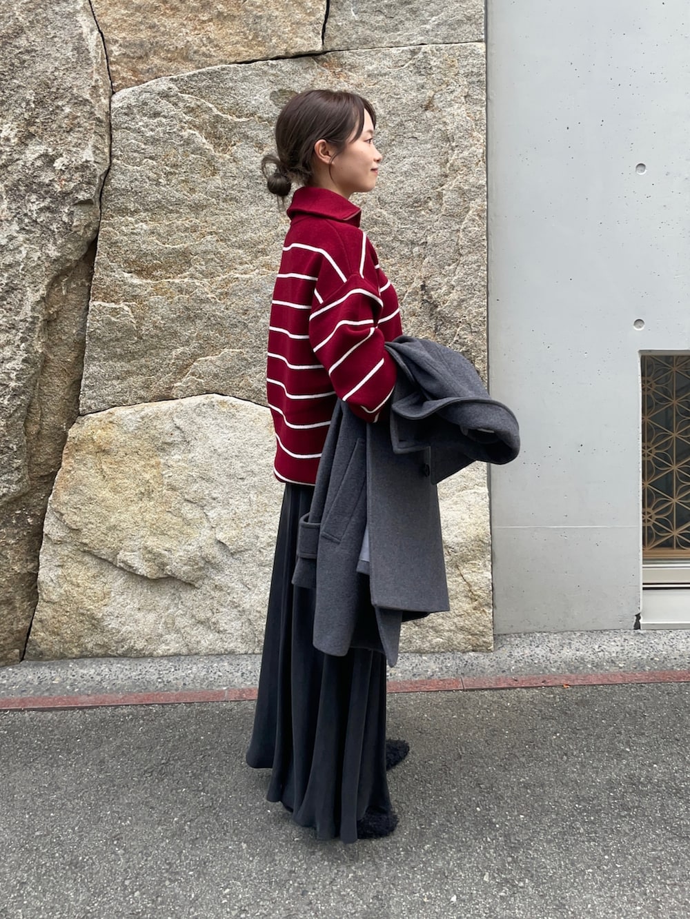 インナーはタグ付けできず申し訳ございません。opera sportのボーダーニットです!ジッパーを開けてコートから見えるようにして着こなしていますが、差し色になってとっても可愛いです!