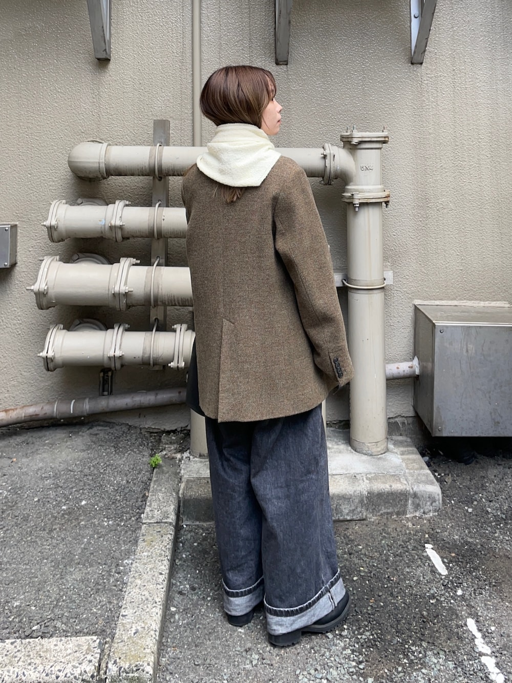 ジャケットはウール100%で上質な英国羊毛を使った軽くてふわっと暖かいツイードジャケットです!アウターとしても使えるゆったりな着丈と身幅が、中にたくさん着込んでいただけますよ✨