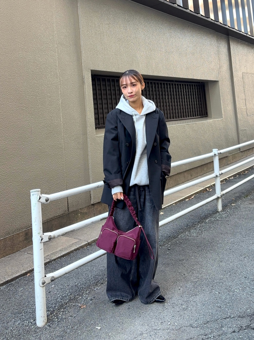 パンツはこちらも裾にフリルがついてるデザインです!深めな色味でコーデが締まります!ワイドな形でゆったりと着れて、暖かく、ウエストゴムのデザインも楽ちんでオススメです!
