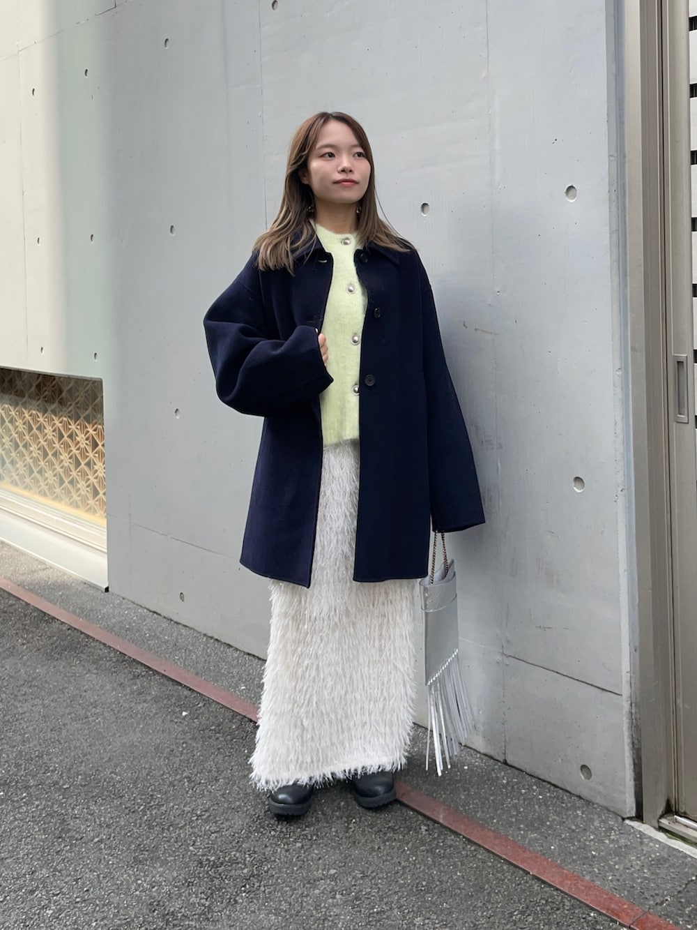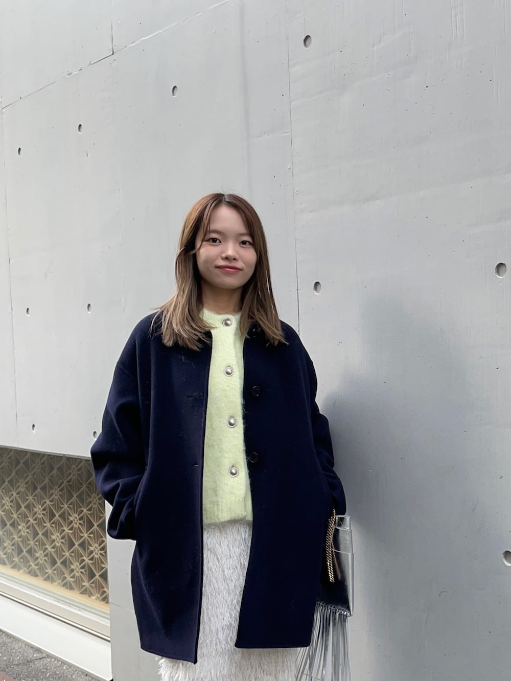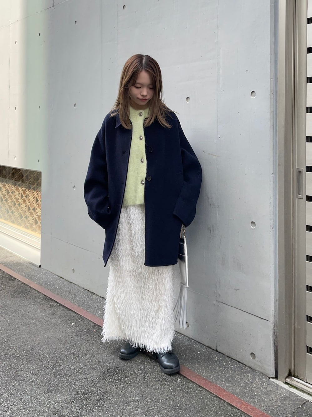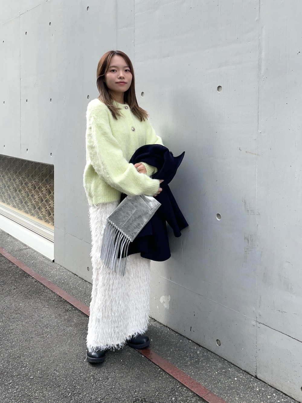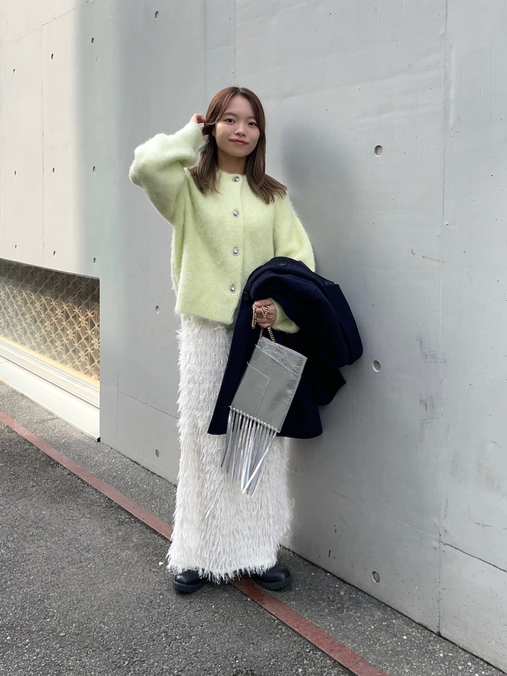 ニットはパステルグリーンが可愛いシャギーニットで、ボタンが外せるカーディガンタイプです!程よい丈感で低身長でもバランス良く着こなせますよ✨モフモフで気持ちの良い素材です!