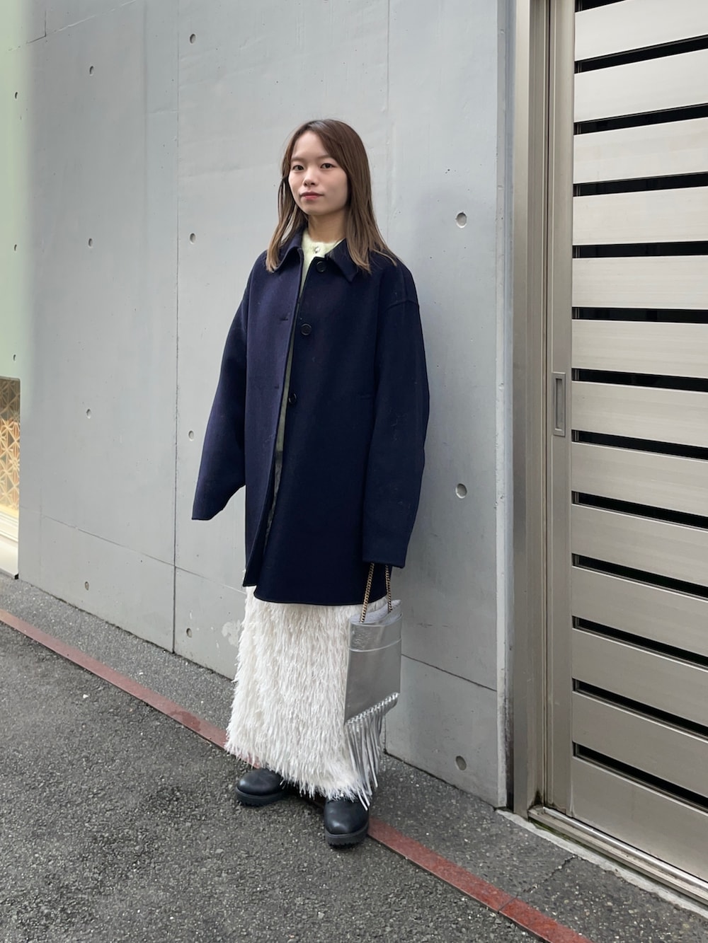 スカートはフリンジが入ったスカートで、シンプルな着こなしのアクセントとなってくれます!私は黒の色味をリアルバイしました!36のサイズ感ですが低身長でも着れる長さでした!