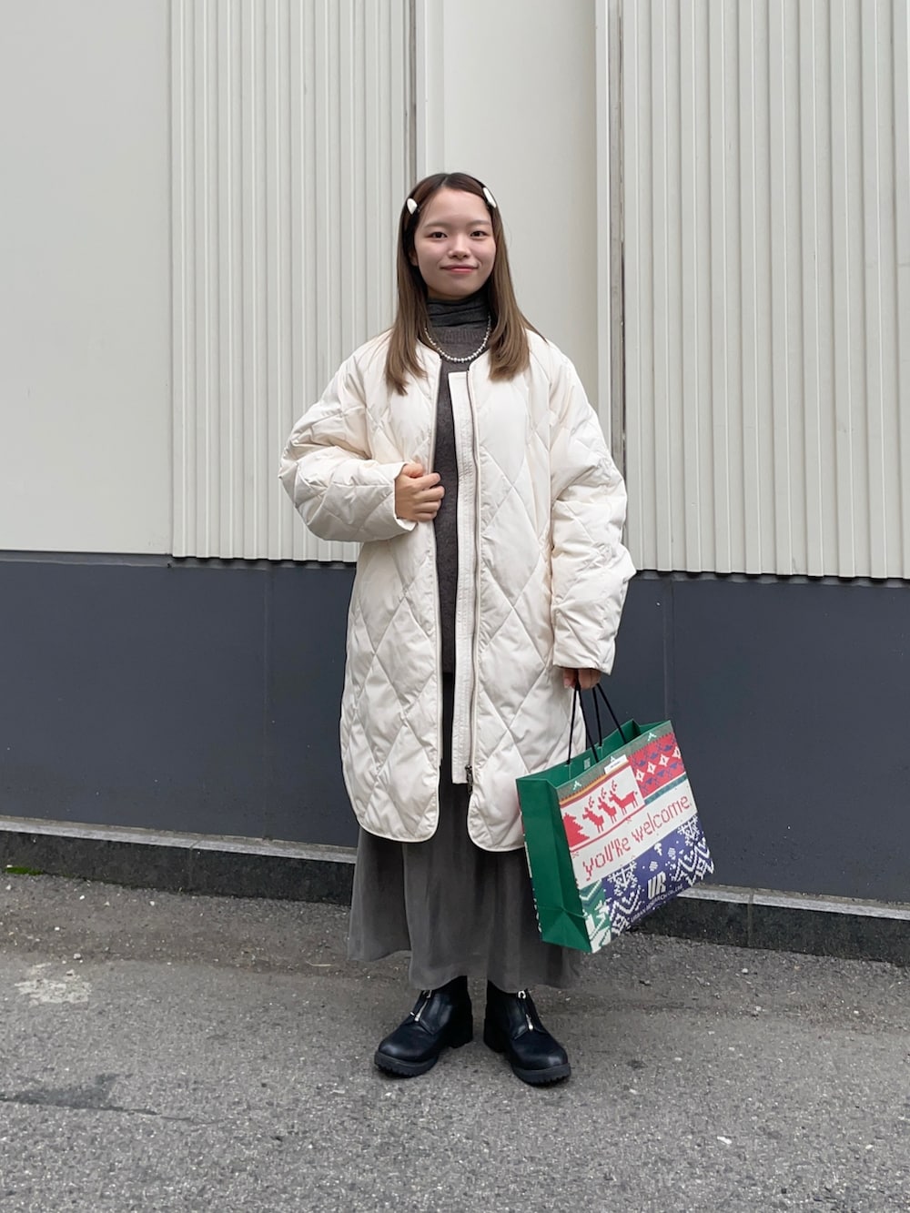 中のニットはFOXの毛が混ざったモフモフニットで、着心地良いです!丈感も長めでお尻あたりも隠してくれるルーズな丈感です!低身長のゆったり着る着丈も可愛くてオススメです!