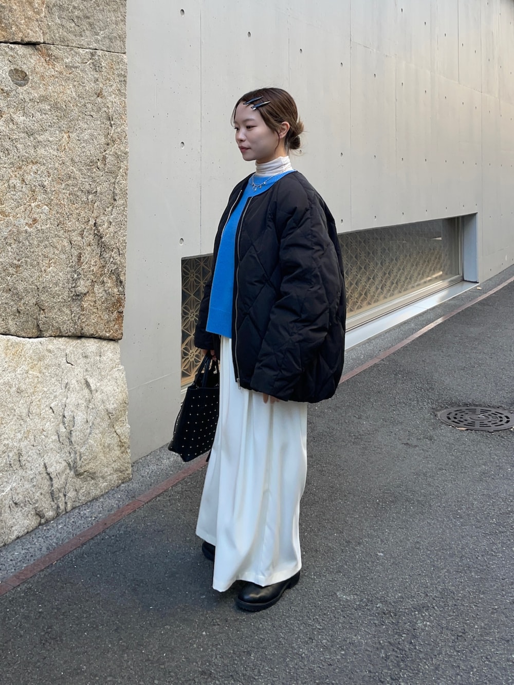 ダウンはキルティングのデザインとマットな質感でキレイめとしてもお使いいただけるアウターです!ダウン80%とフェザー20%で、とっても暖かく、軽く、さらっと羽織れるのもオススメです!フリーサイズですが、オンラインにSサイズがございますので、気になる方は店頭のキルティングを試着してみてください✨