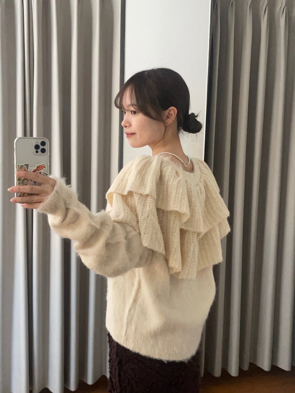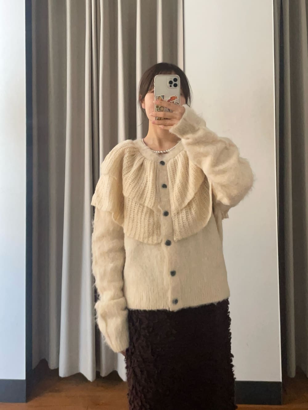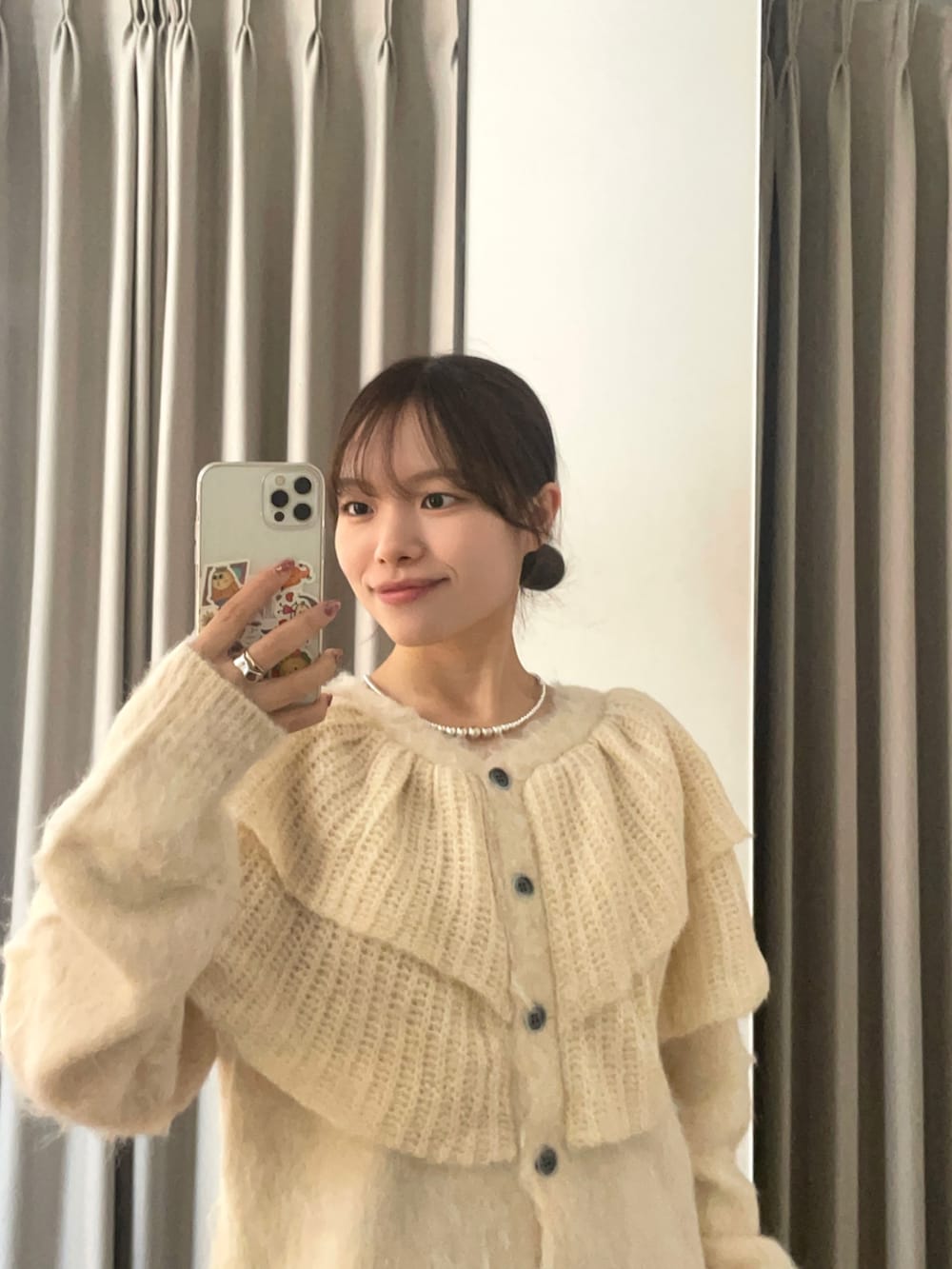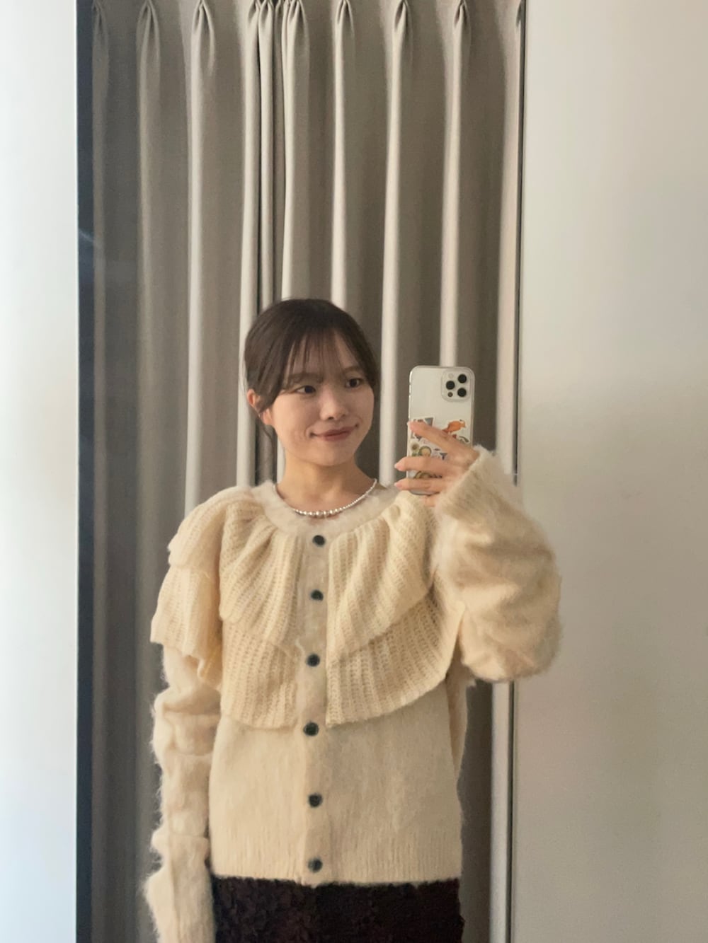 新色はハニーという名前の色味で、クリームっぽい柔らかな配色で、デザインがとっっても可愛い♡です。着丈は低身長でもバランスよく着れる長さで、ボタンを外して羽織としてもお使いいただけます!私はこの色味リアルバイしました!✨