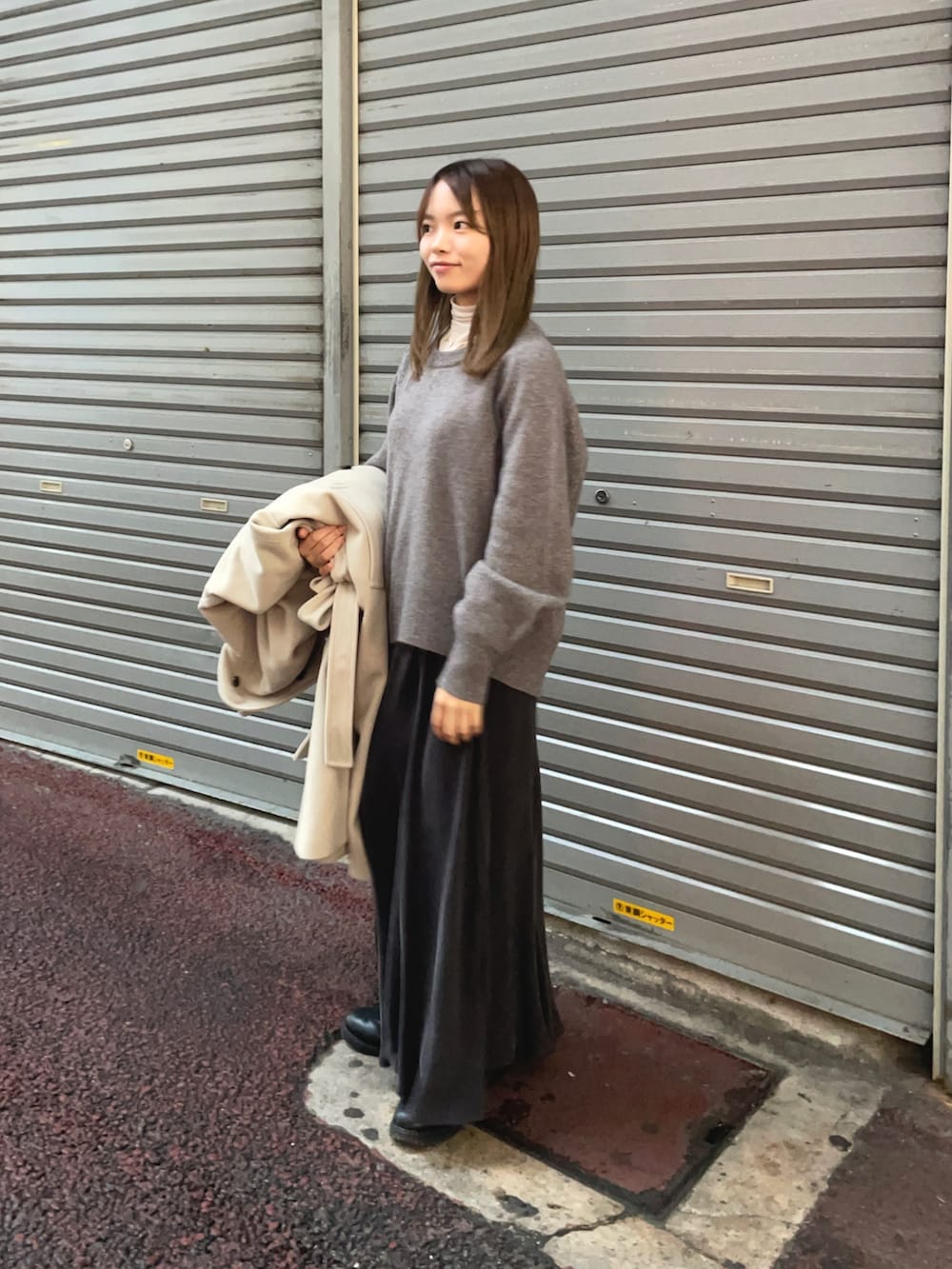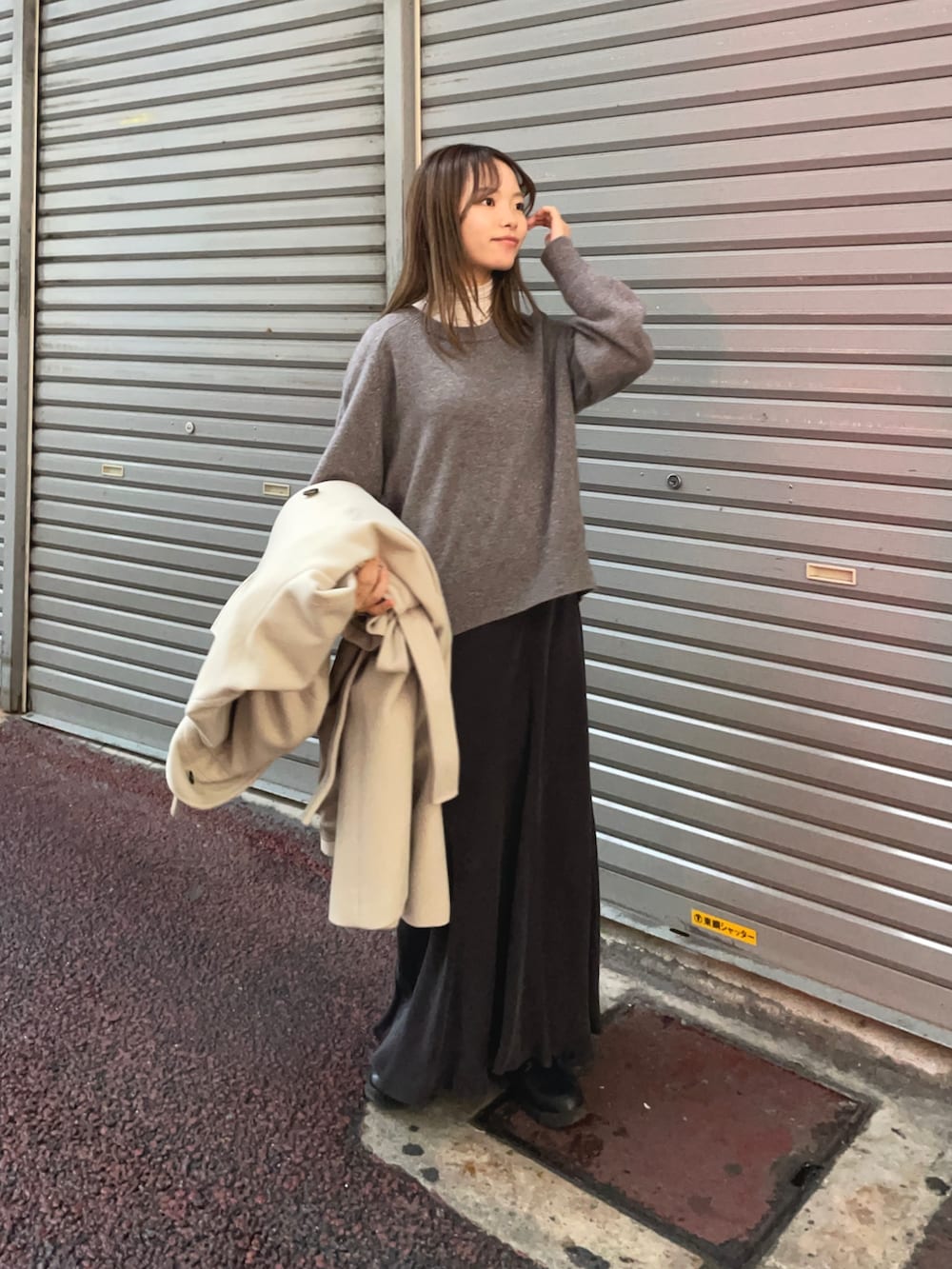 トップスはラメ感が可愛いニットで、キレイめな印象を与えてくれるアイテムです!程よい着丈で大人っぽく着こなせますよ♪グレーの方がより深い色味もあって、きらきら感が増しているような気がします!