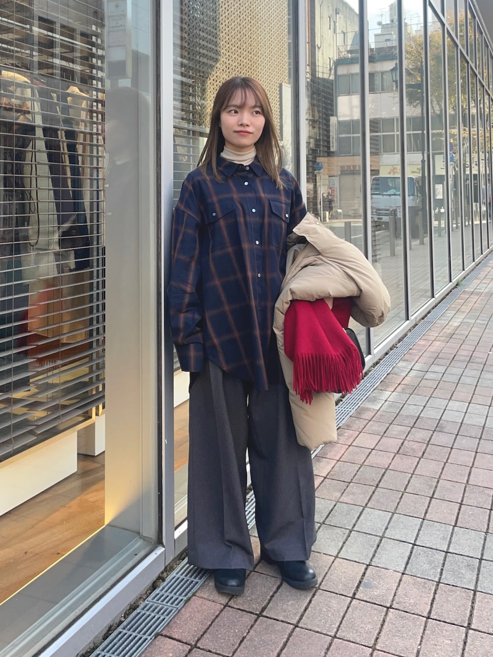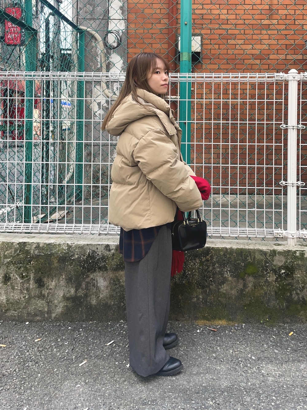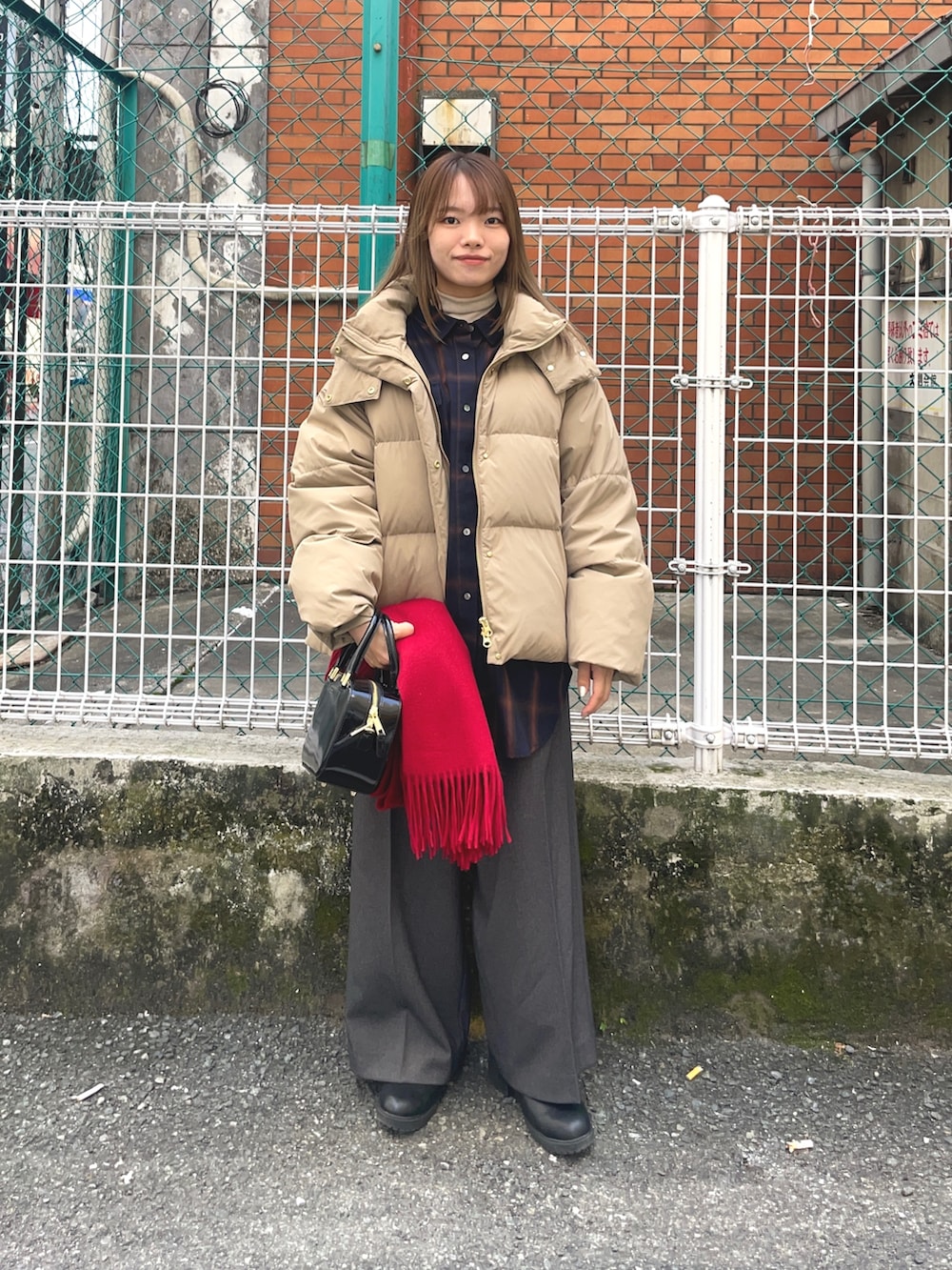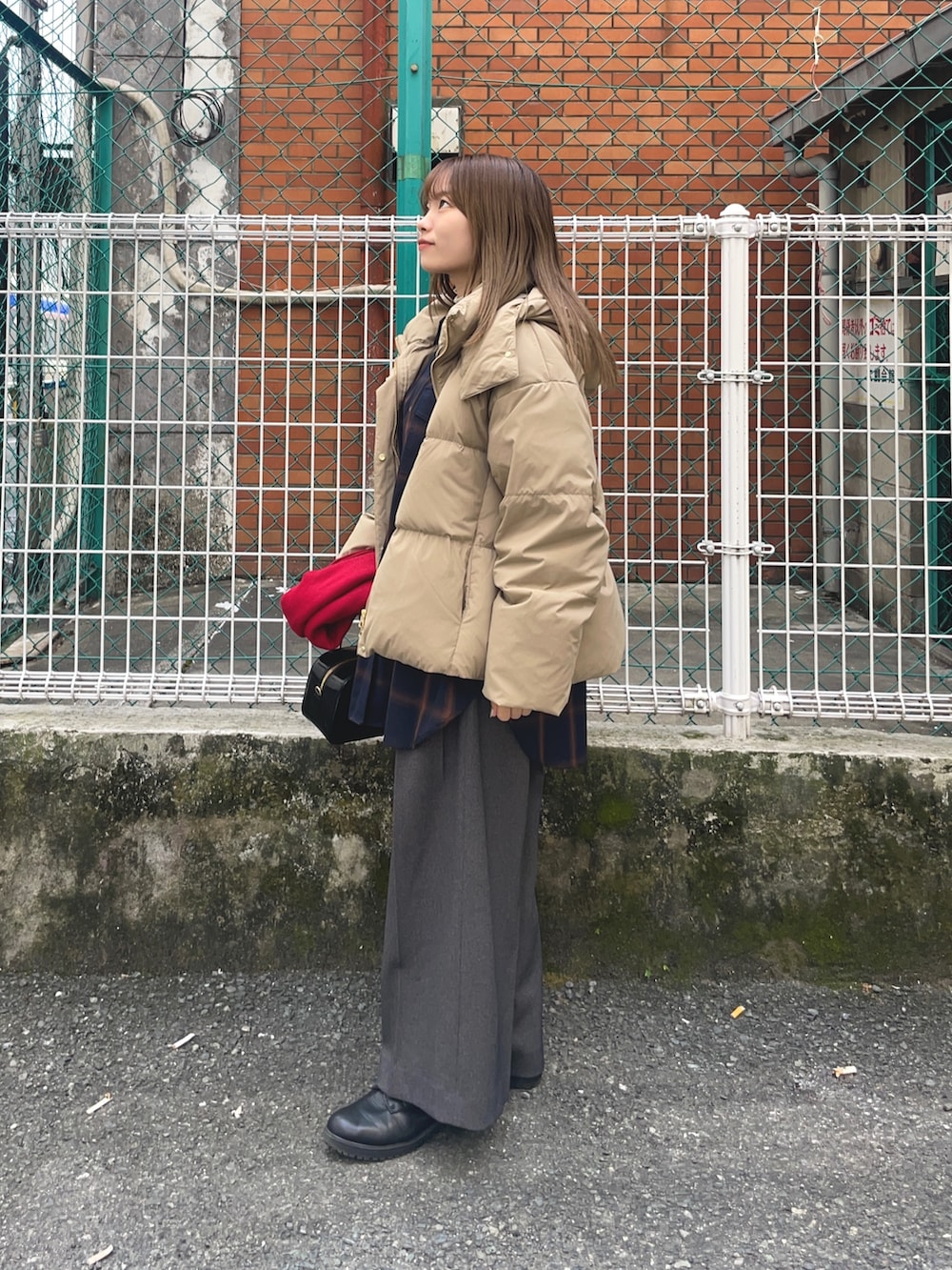 パンツはリアルバイしたウール混タックギャザーストレートパンツです!形が太すぎず、細すぎないデザインで、ウエストゴム紐で調節できるところもオススメです✨私の身長で8センチ裾上げしました!