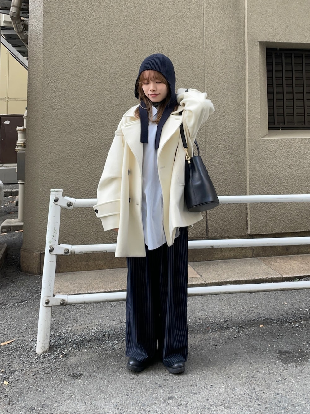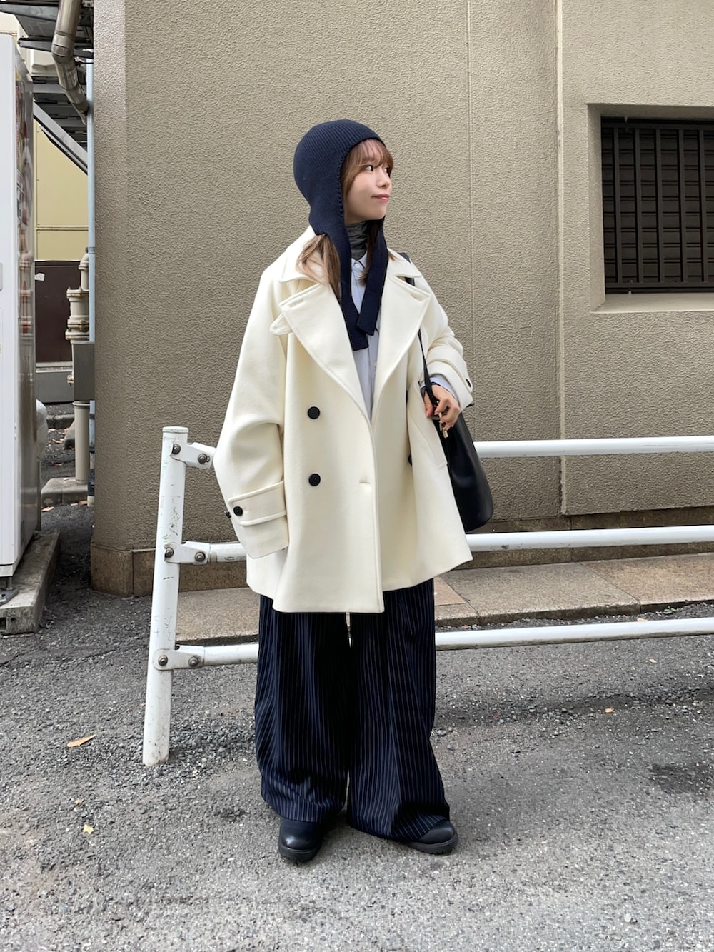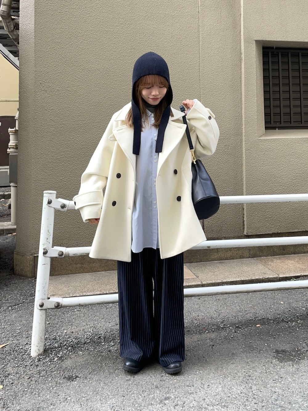 コートは毎年人気のメルトンPコートがさらに軽く暖かくなって今年も登場しました!大きめの襟が小顔効果になってくれて、スタンドカラーにもアレンジできるところもオススメです!低身長でもバランス良く着れて、身幅もゆったりしているので、沢山中に着込むことができますよ✨