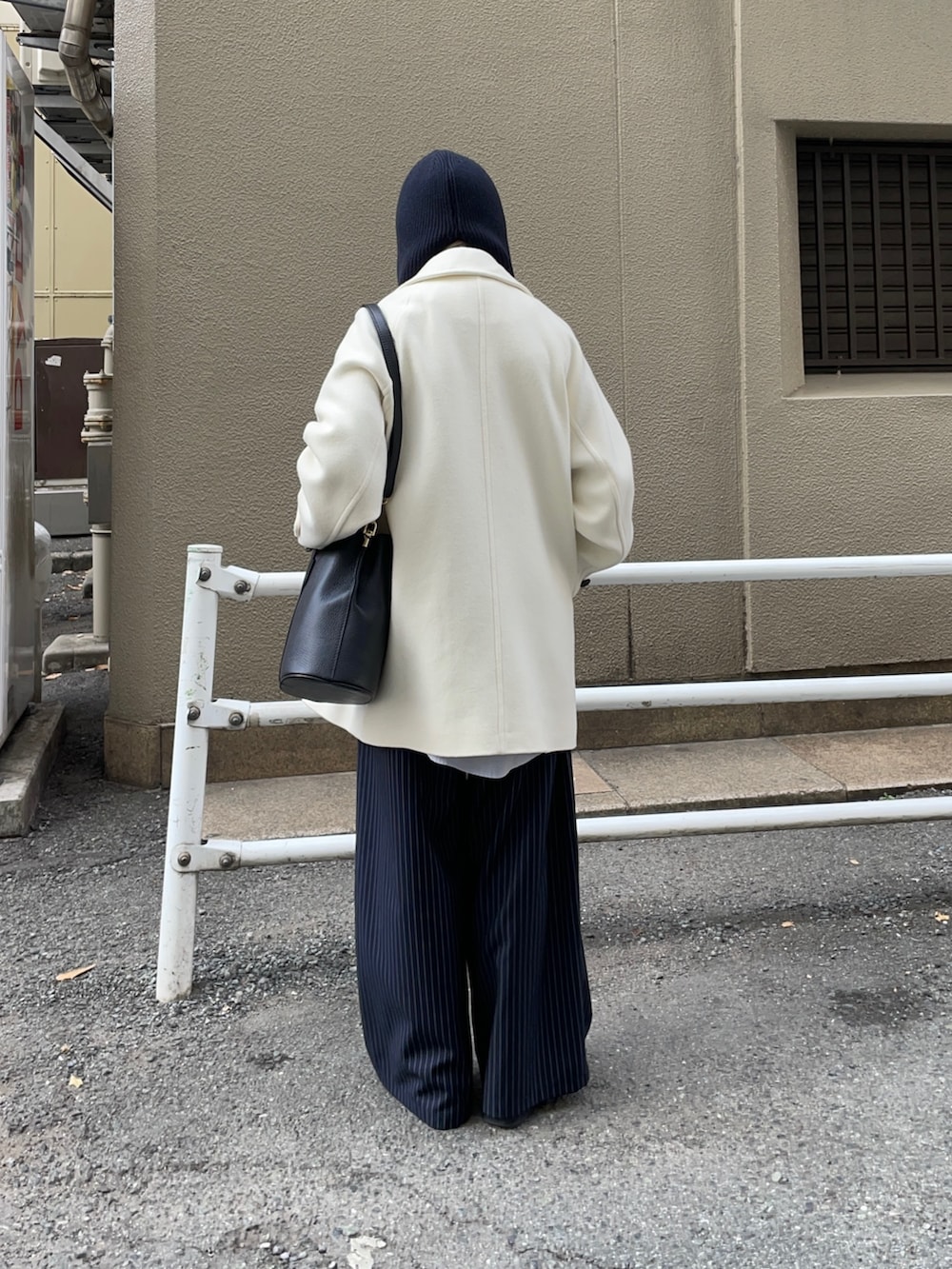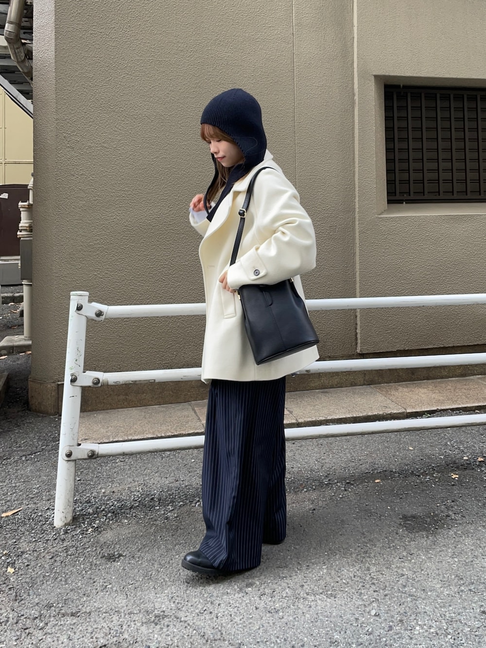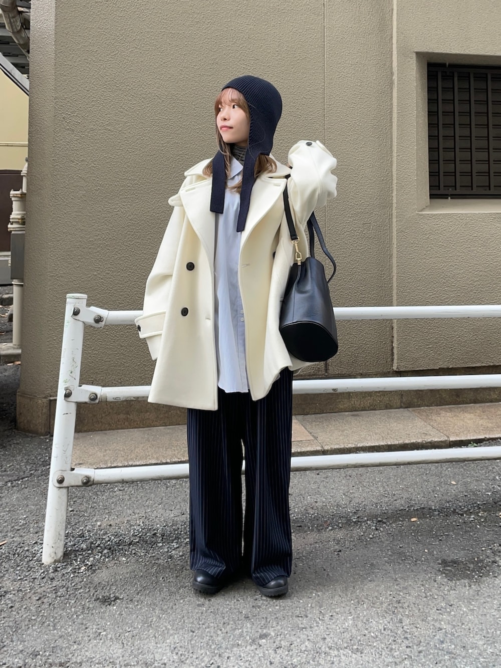 コートは毎年人気のメルトンPコートがさらに軽く暖かくなって今年も登場しました!大きめの襟が小顔効果になってくれて、スタンドカラーにもアレンジできるところもオススメです!低身長でもバランス良く着れて、身幅もゆったりしているので、沢山中に着込むことができますよ✨