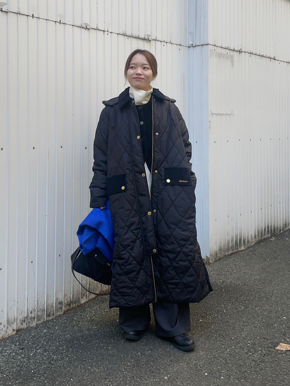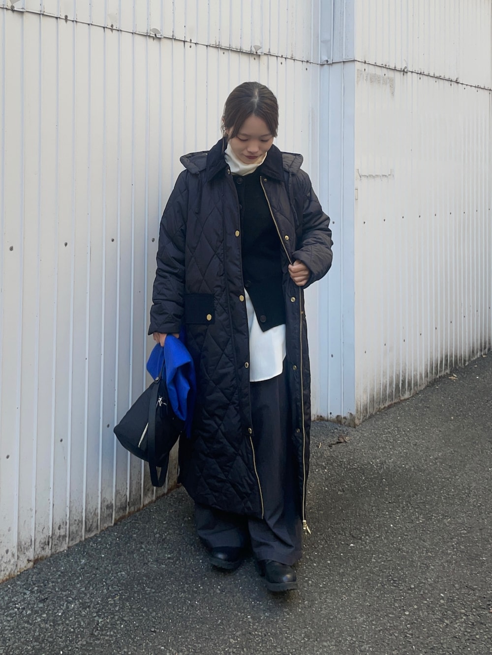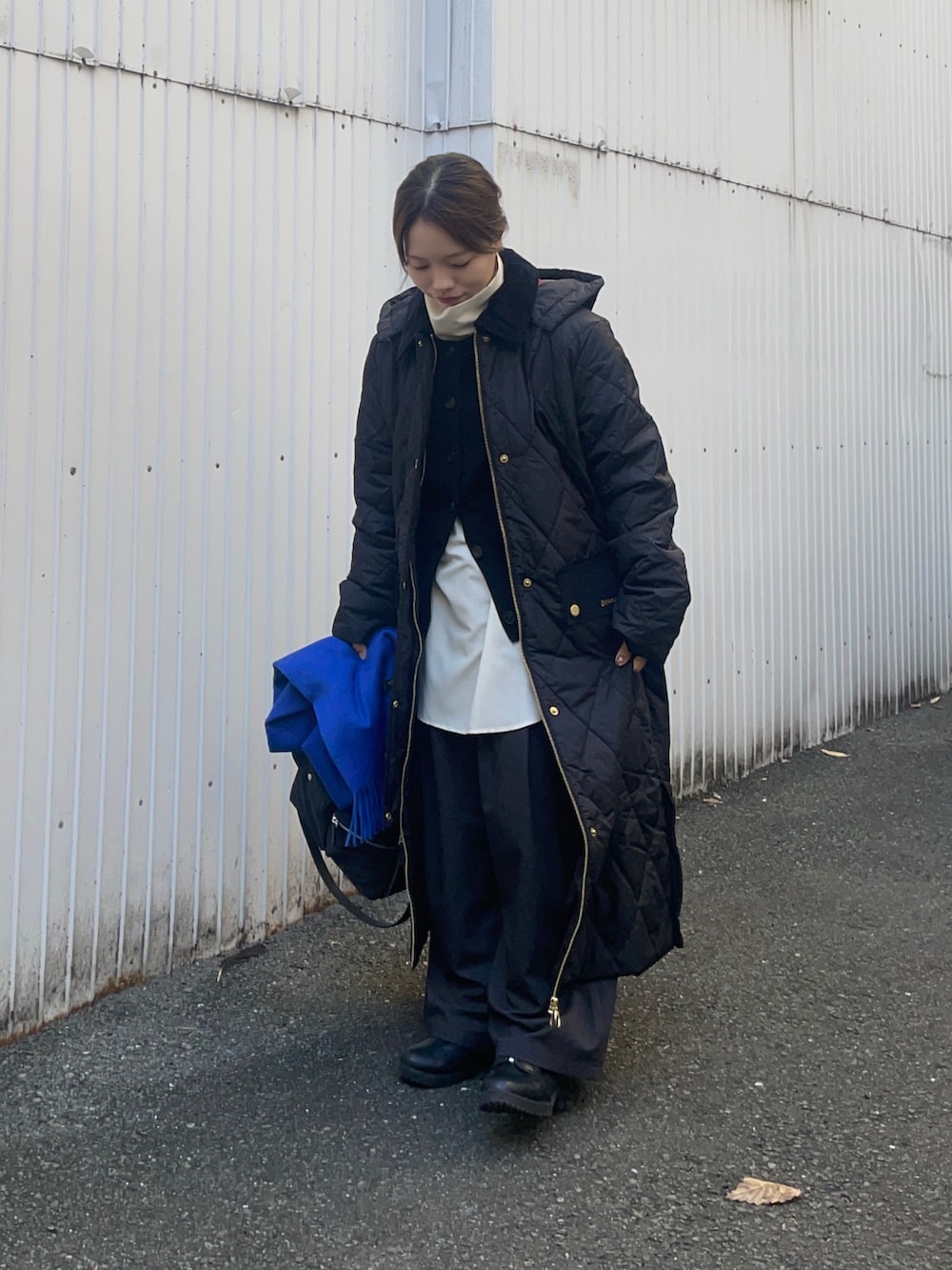 パンツはリアルバイしたウール混タックギャザーパンツで、形が太すぎず細すぎずでシルエットキレイなのに、ウエストゴム紐で調節できるところもオススメなアイテムです!私の身長で8センチ裾上げお直ししましたー!