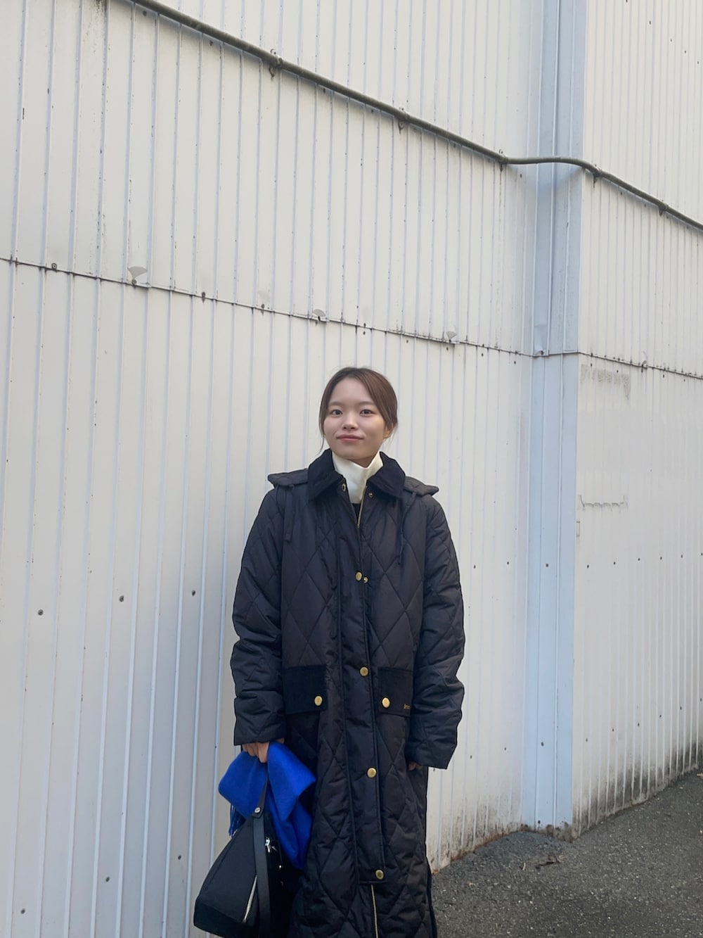 軽量で、保温性に優れたポリエステル中綿入りのキルティングコートて、フードは取り外しが可能です!