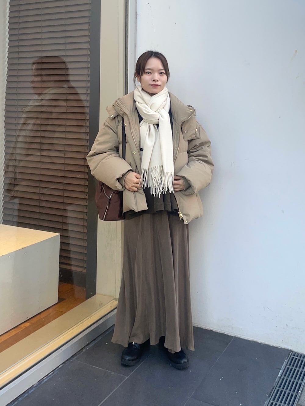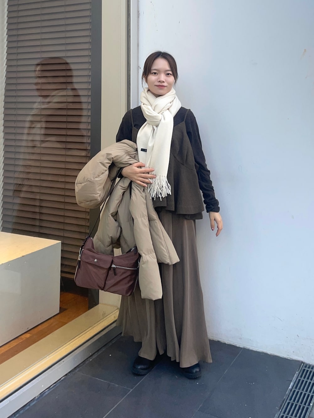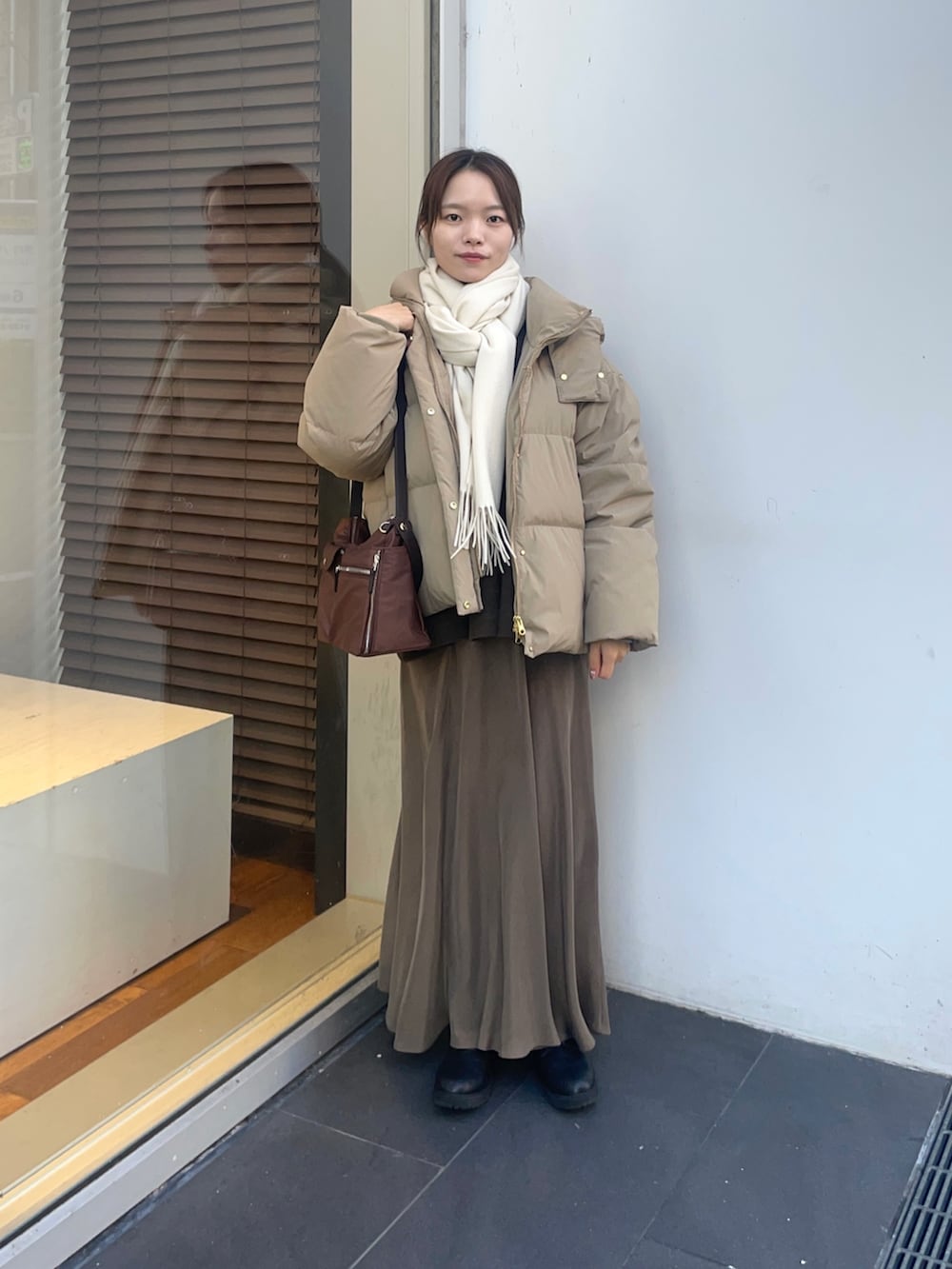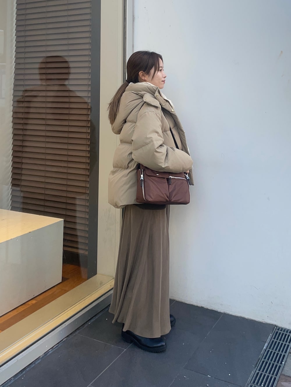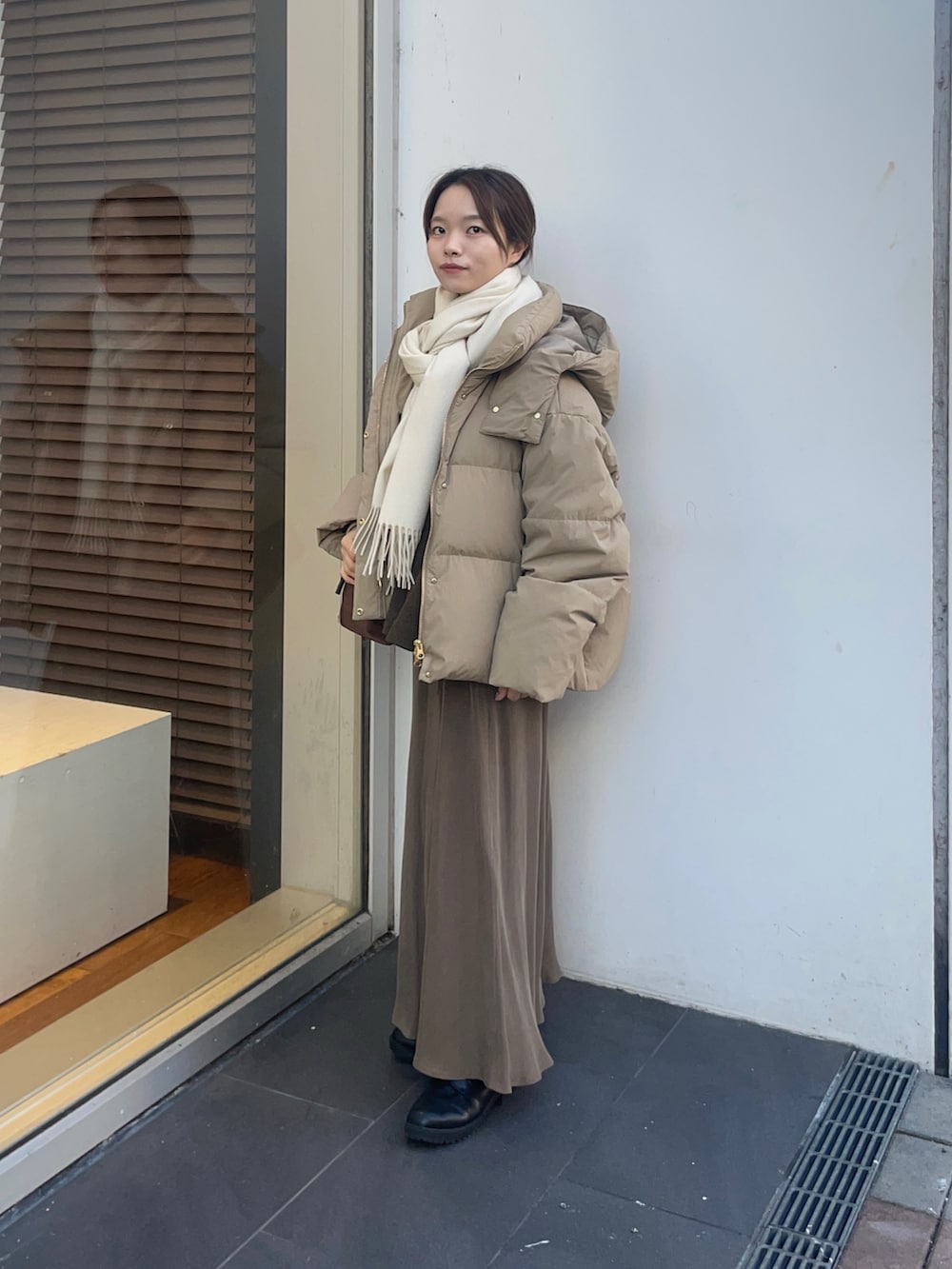ダウンはフードが外せる2WAY仕様で、軽くて着丈もちょうど良いです!ボタンやチャックがゴールドなので、キレイめでもお使い頂けるダウンです!私の身長であえて38のサイズを着ています!ゆったり着れるので、低身長でもオススメです✨