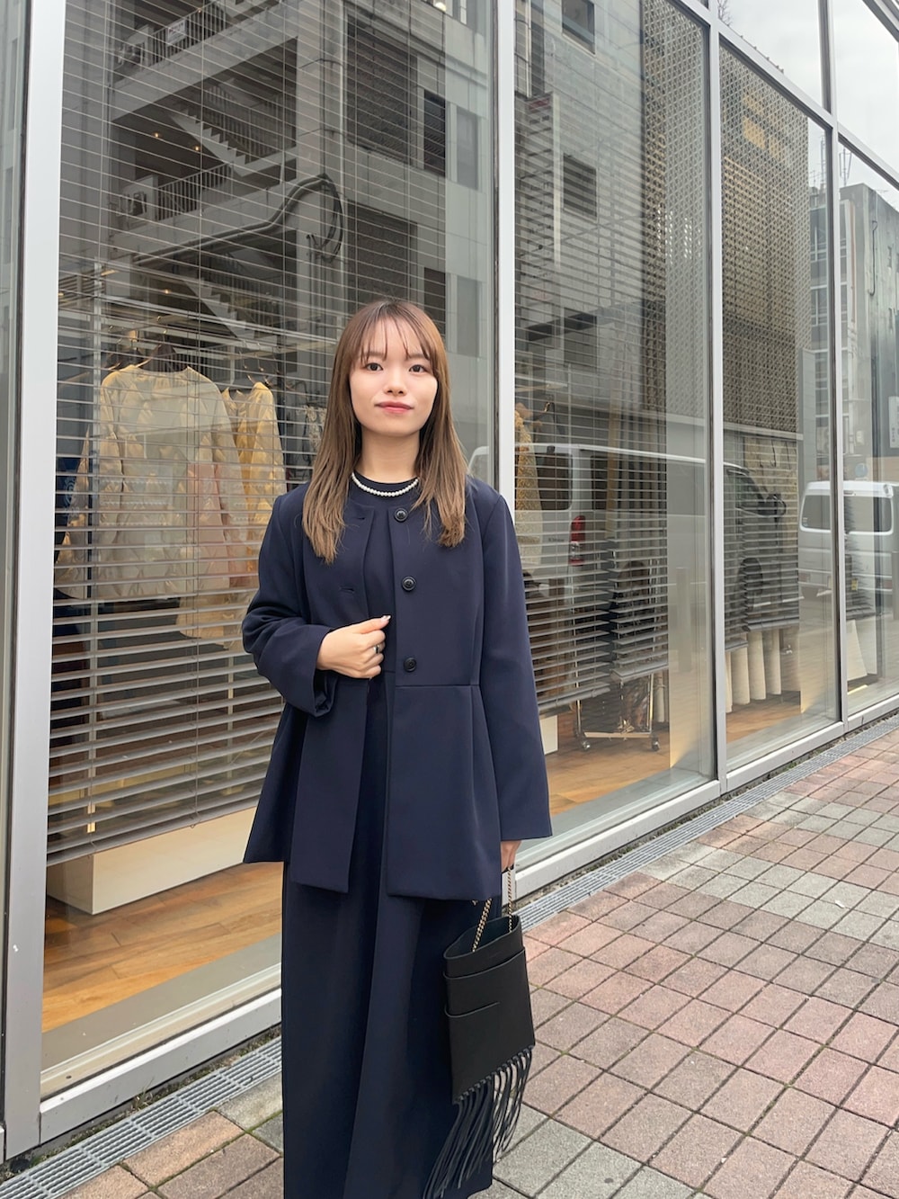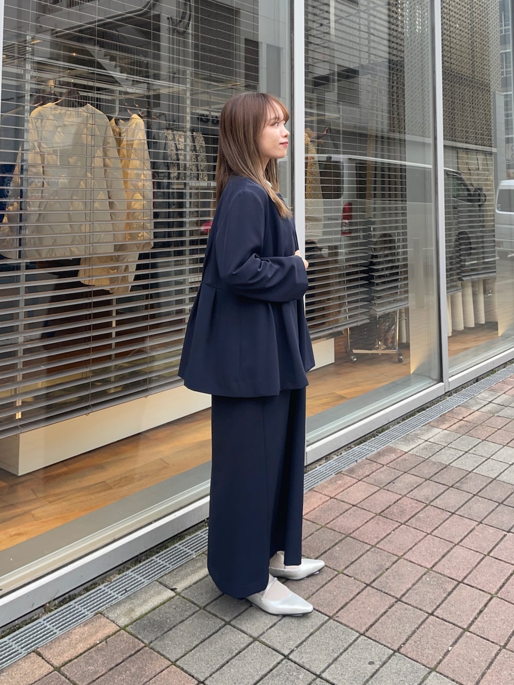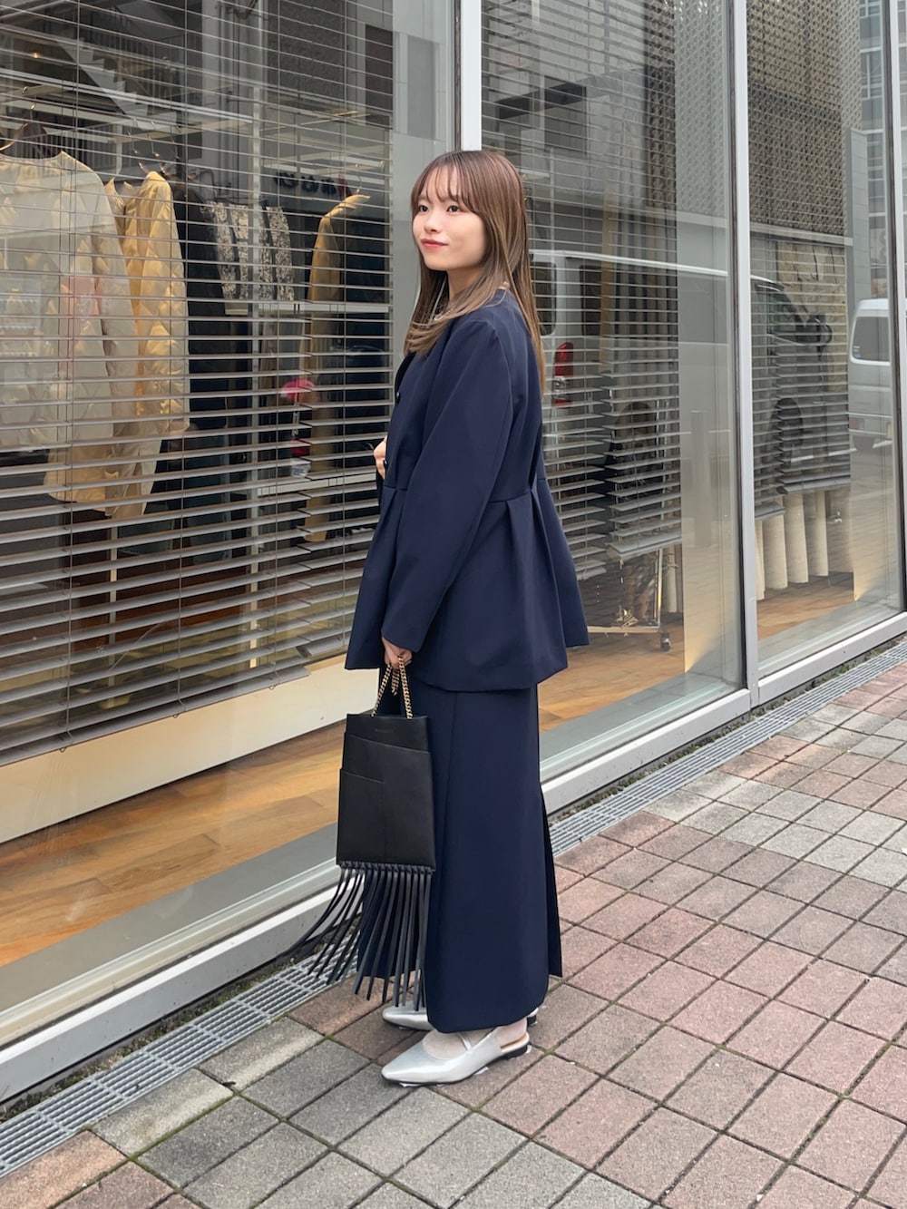 トップスは、ノーカラーで首元スッキリのペプラムジャケットを羽織ってみました!ウエストに程よいくびれがあり女性らしいシルエットを作ってくれます!