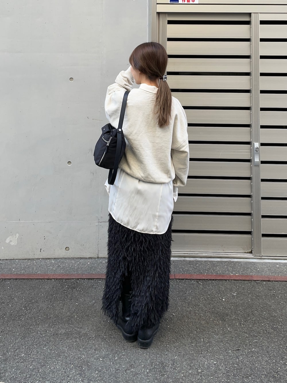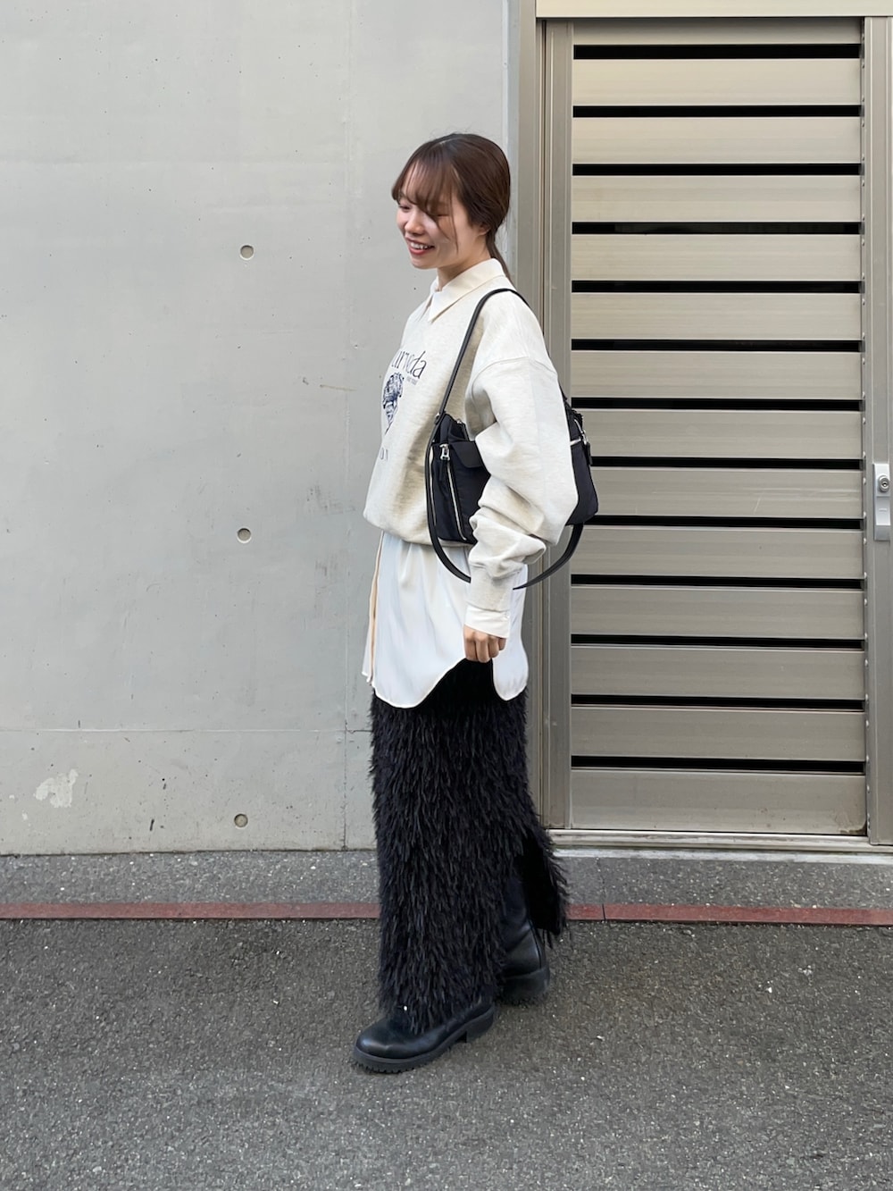 スカートはフリンジが入ったフリフリなスカートです!私の身長で36のサイズを履いてますが、着丈ちょうど良かったです♬やや透け感があるので冬はスカートと同色のタイツを履いてます!春になったらデニムとレイヤードしても可愛いと思います!