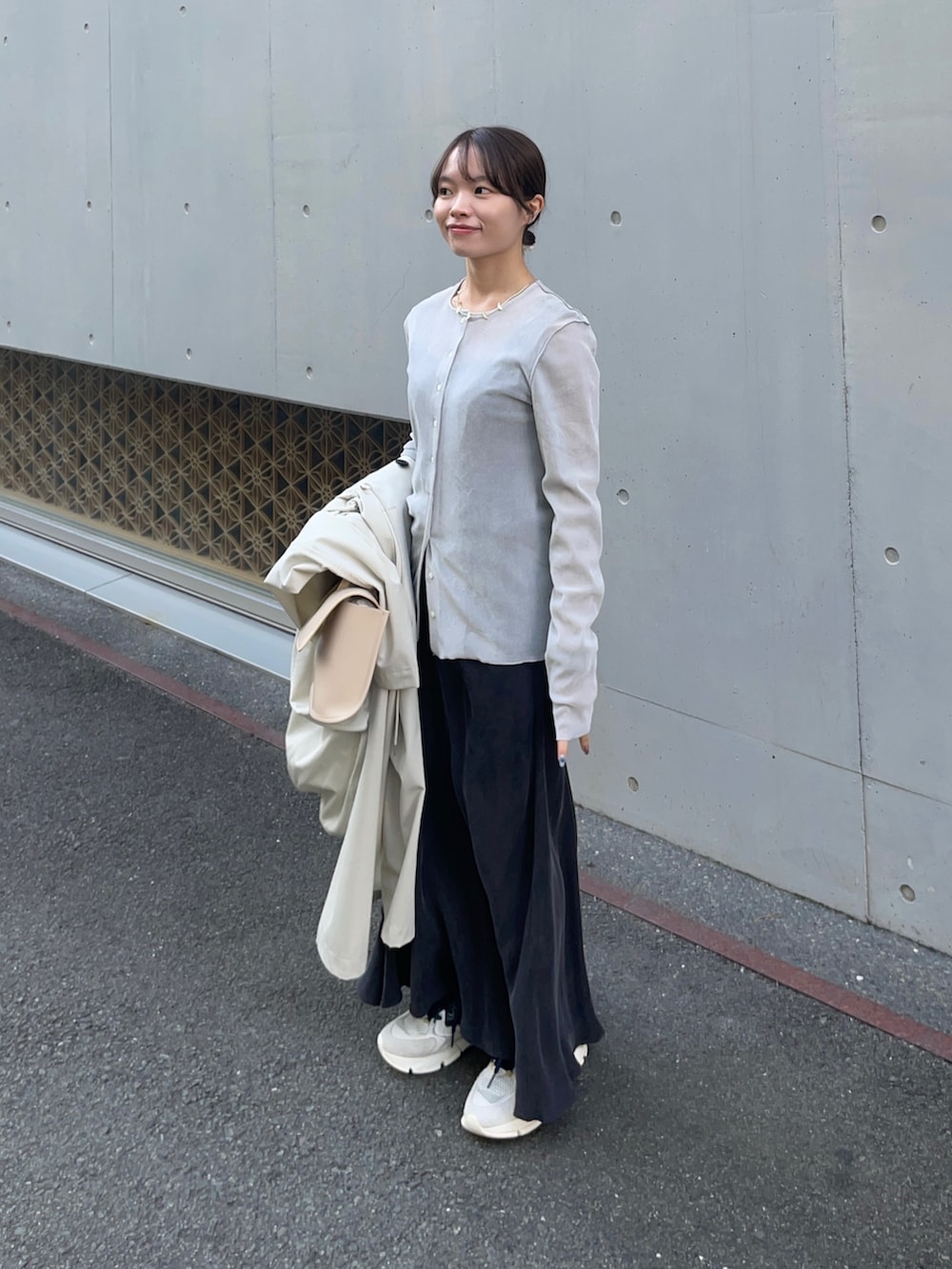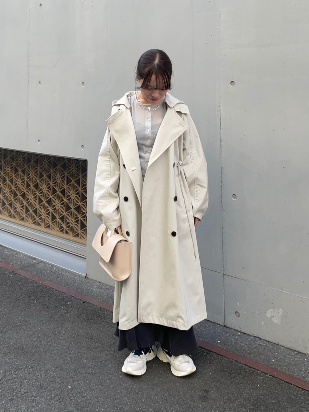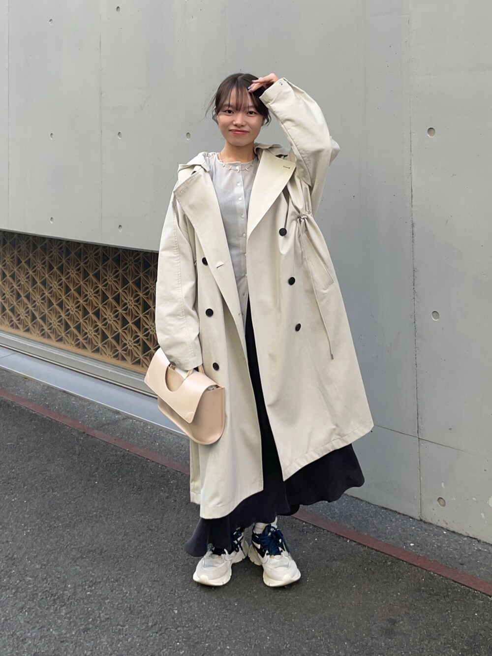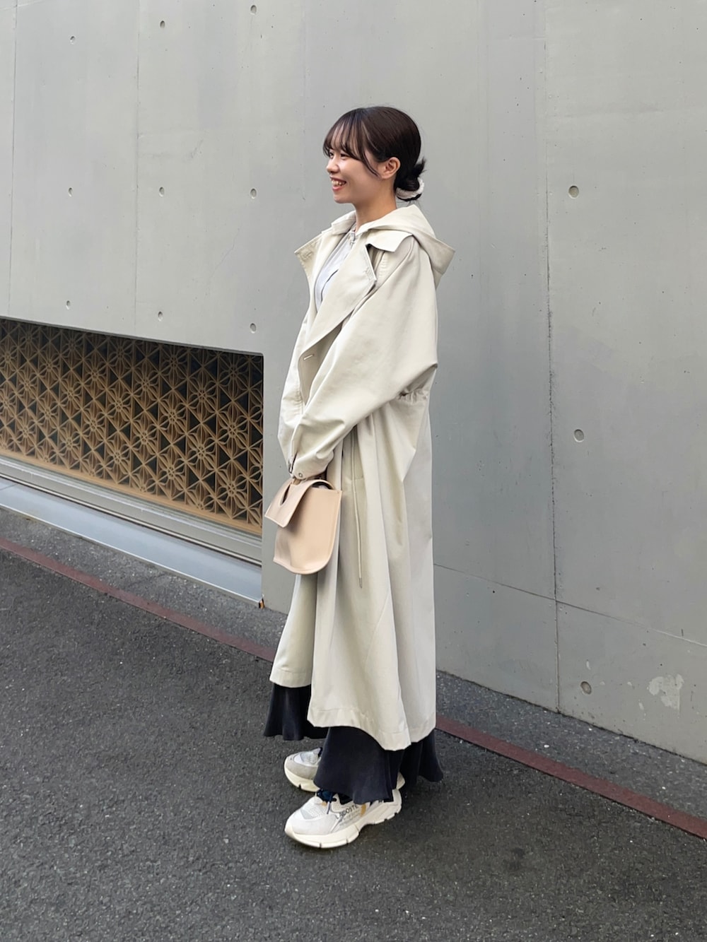 トレンチコートはフード付きの2WAYコートです!低身長に嬉しいサイズ感ありのタイプで、私のサイズにも合いました✨さらっと羽織れる素材とフード外せばきれいめにも使えますよ!