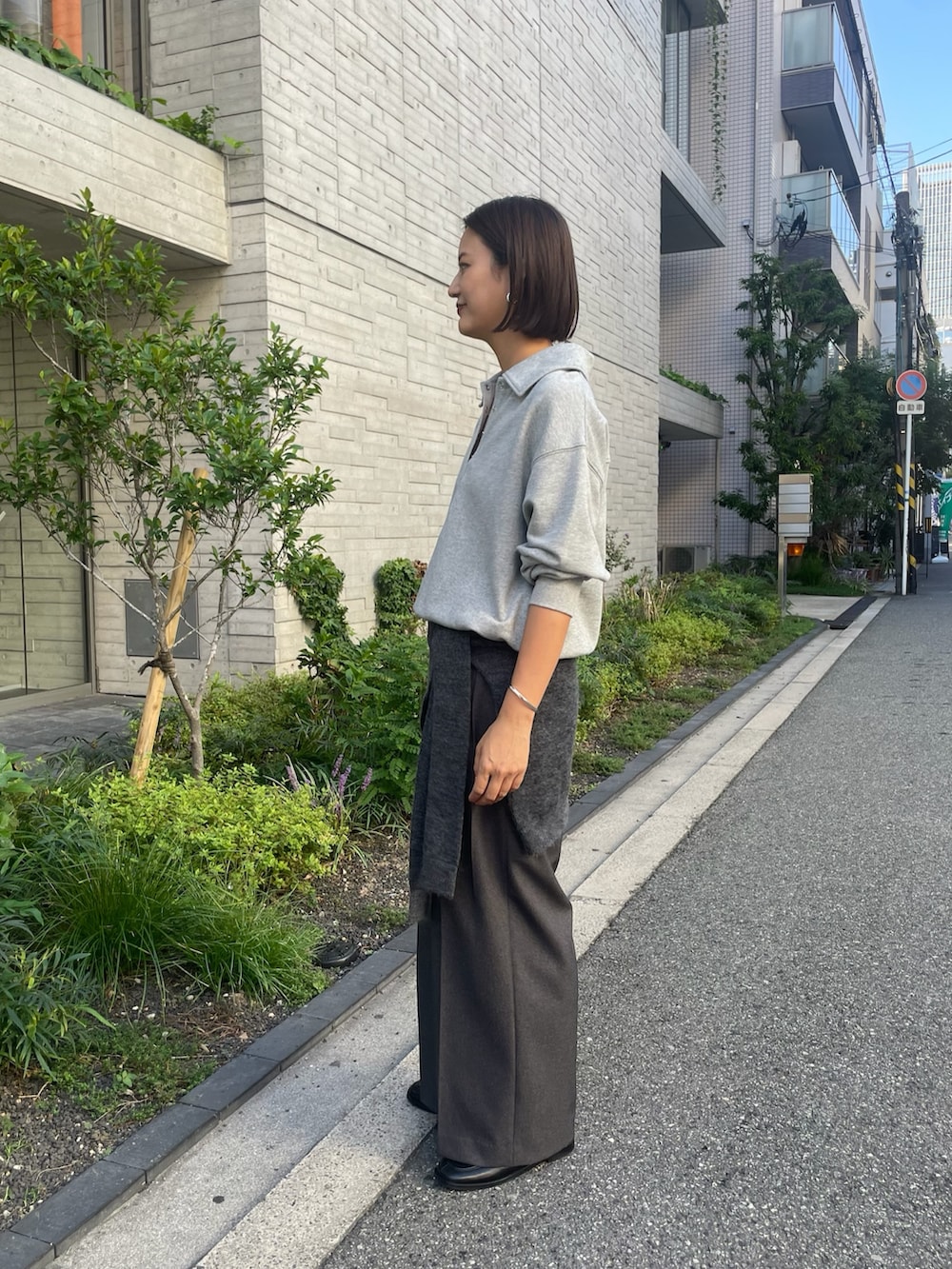 シャツカラーのスウェットはカジュアルになりすぎずおすすめです🤩