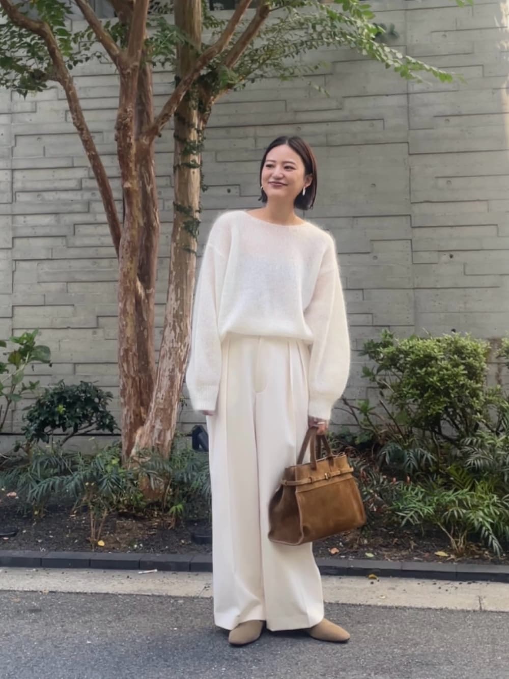 ニットは程よくゆったり!襟ぐりのあきが女性らしくかわいいです🤍