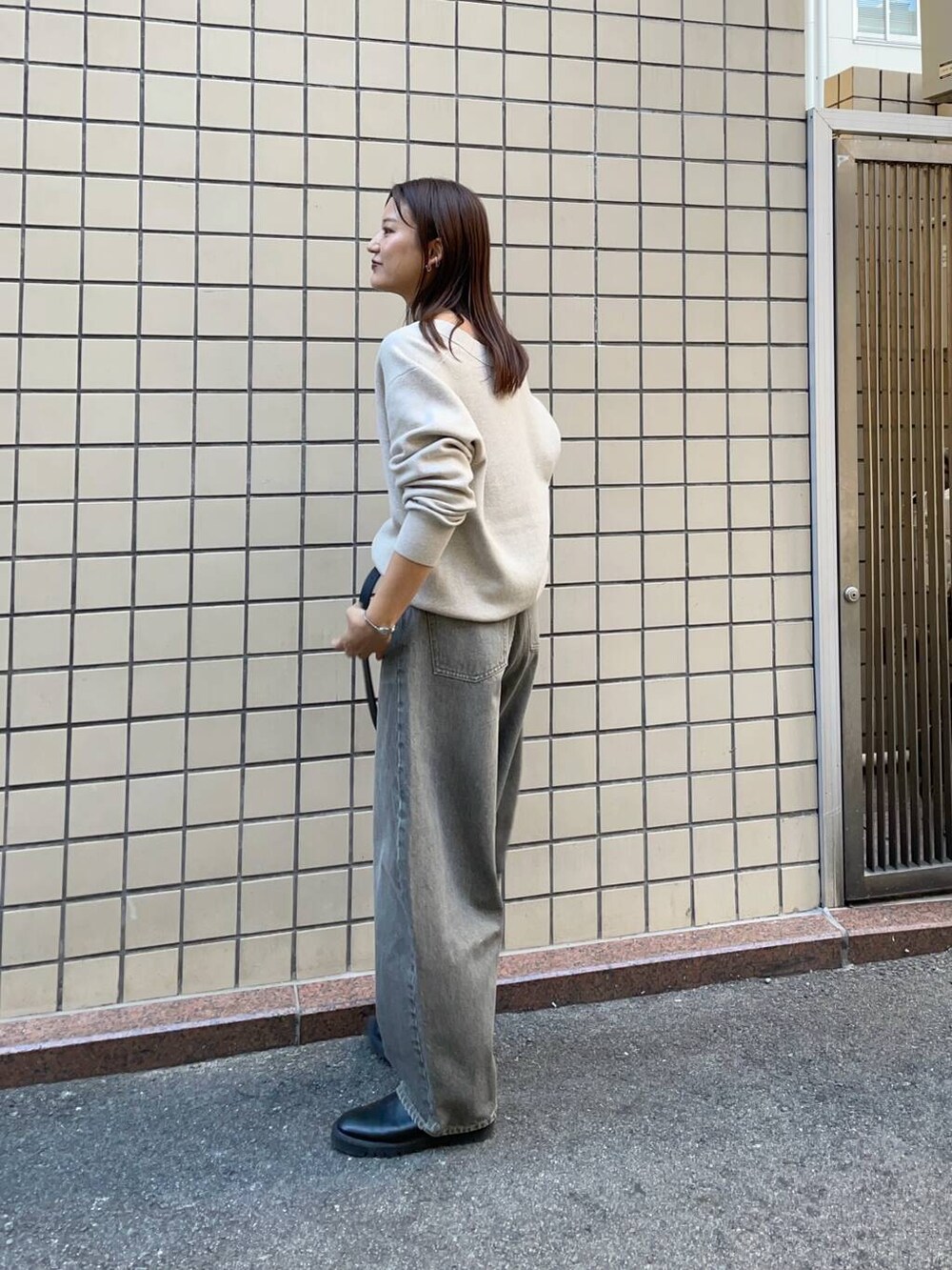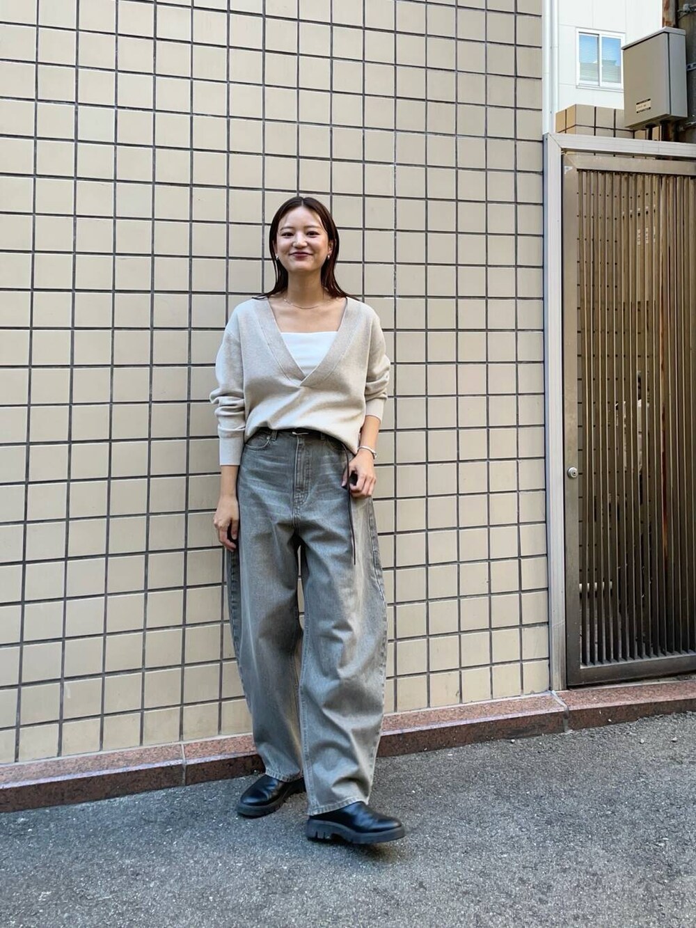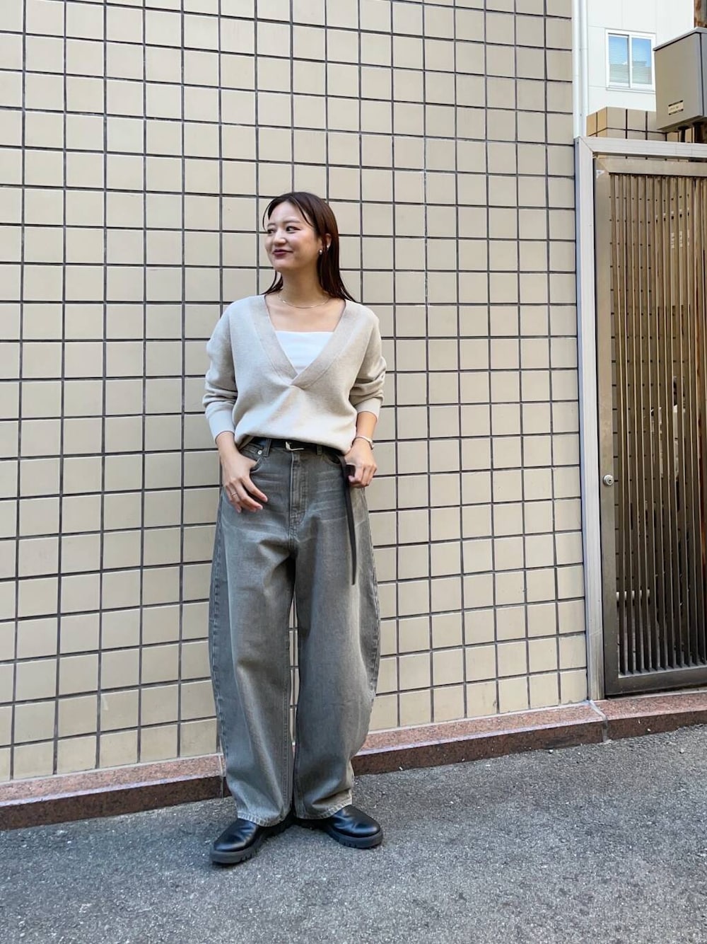 Vネックのニット合わせですっきり感をプラスしました🫧
