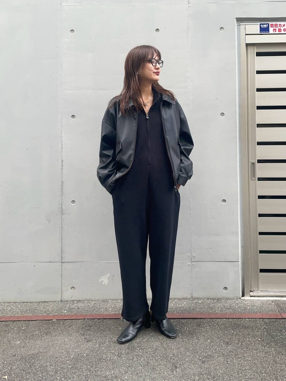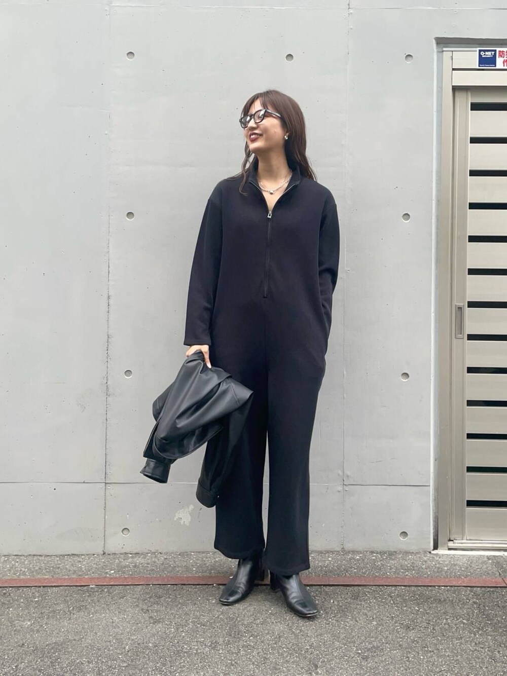ジャンプスーツだけだとラフになるのでレザーブルゾンプラスしてアクセントに🙂↕️