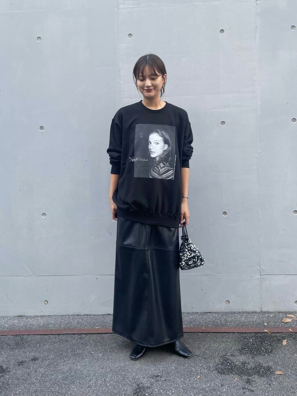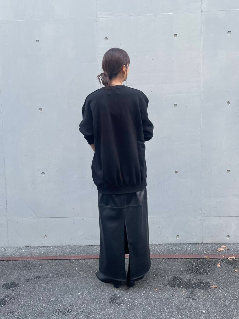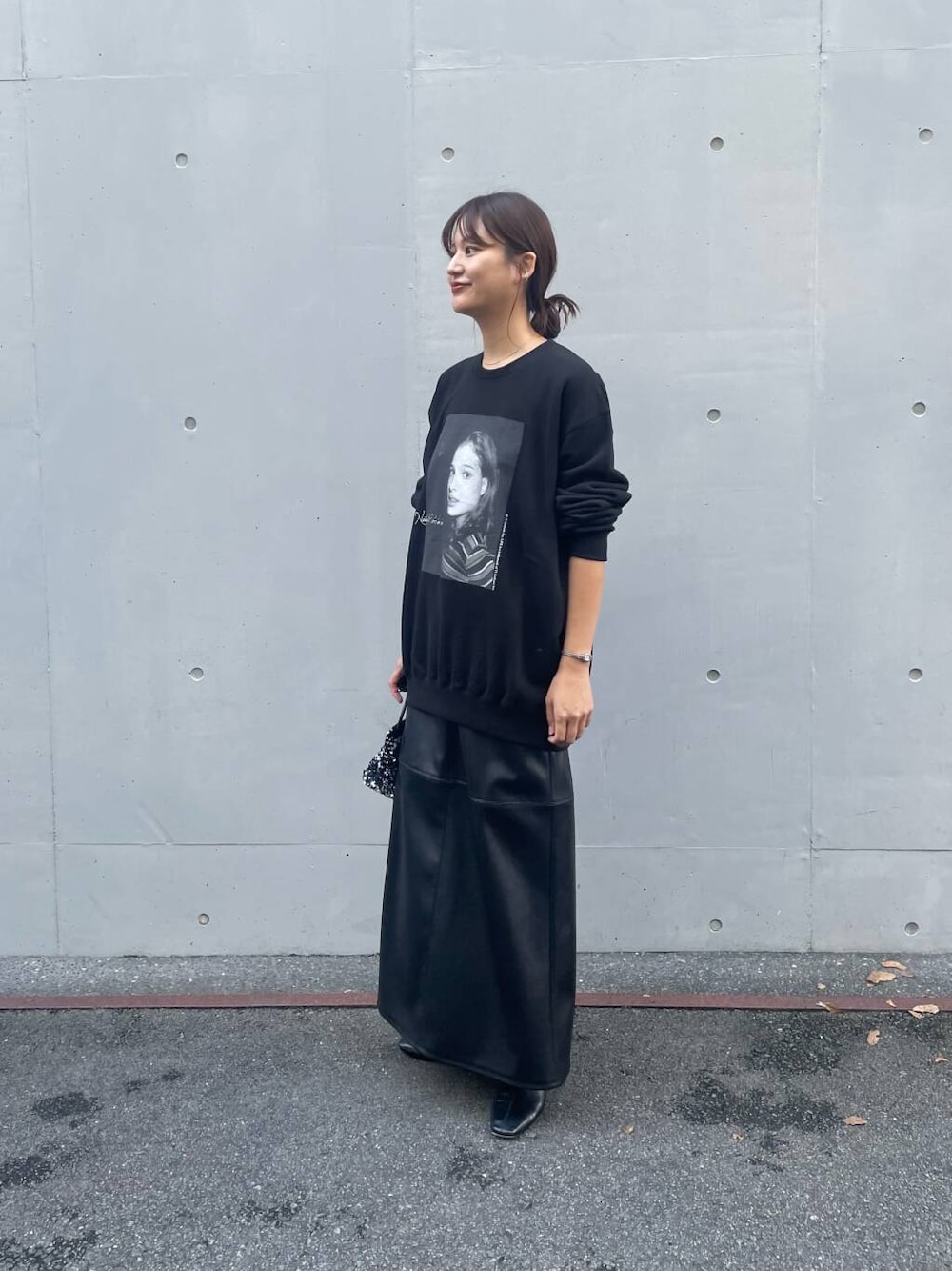 レザースカートはマキシ丈でストンと落ちるシルエットです🥰