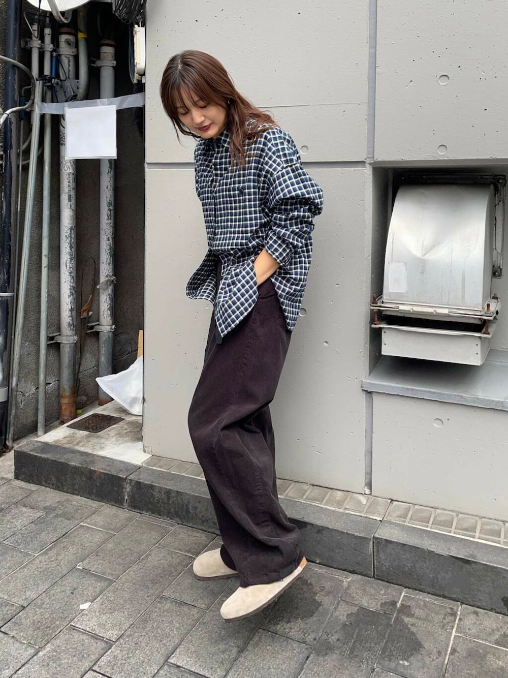 コーデュロイパンツと合わせてメンズライクな印象に👌🏻