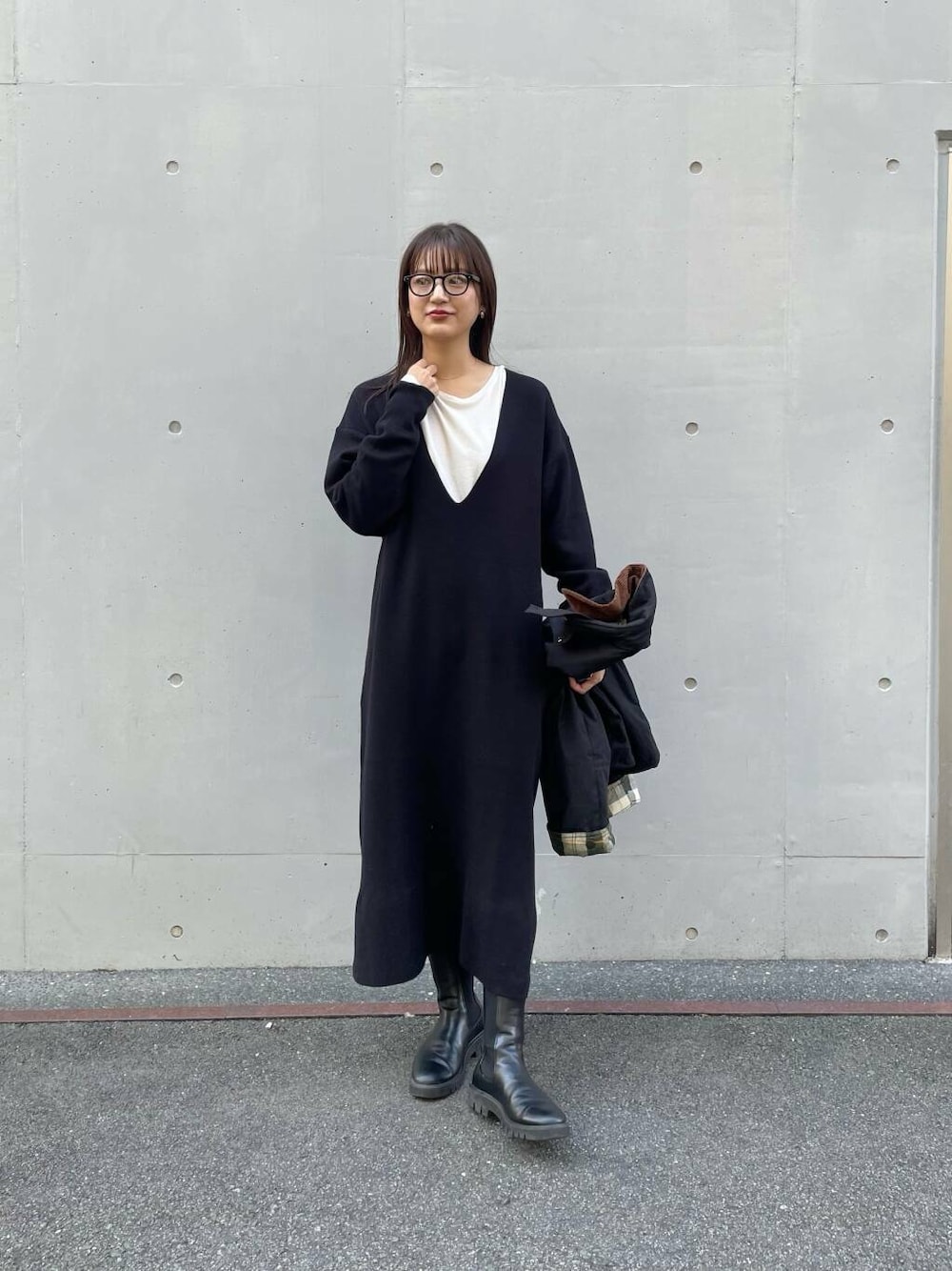 楽ちんワンピースはカットソー合わせでカジュアルに😌