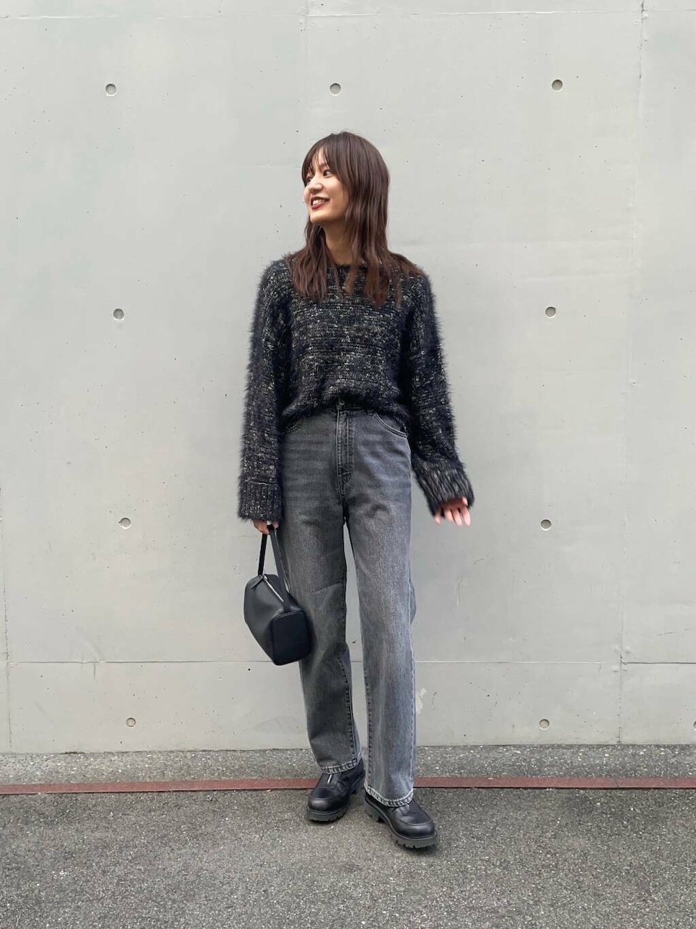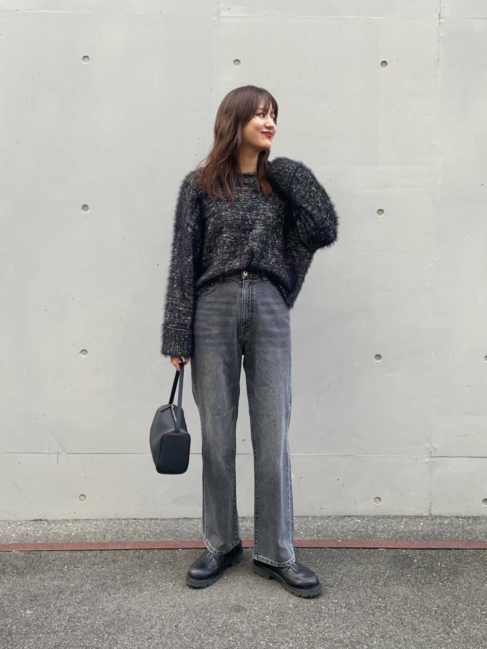 シャギーニットをデニム合わせでカジュアルダウン🖤
