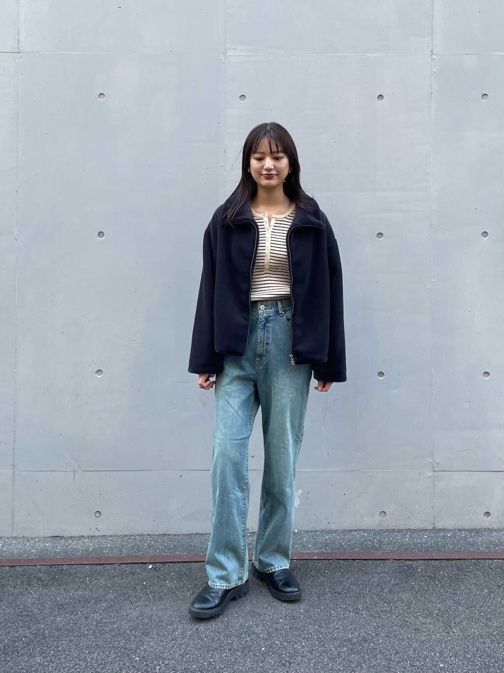 ボーダー×デニム👌🏻ヘンリーネックのトップスはボーダーだけどカジュアルすぎずおすすめです😊