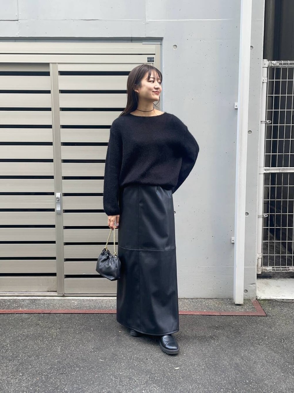 素材感が可愛いニットはブラックだけど重くならないのでおすすめです👌🏻