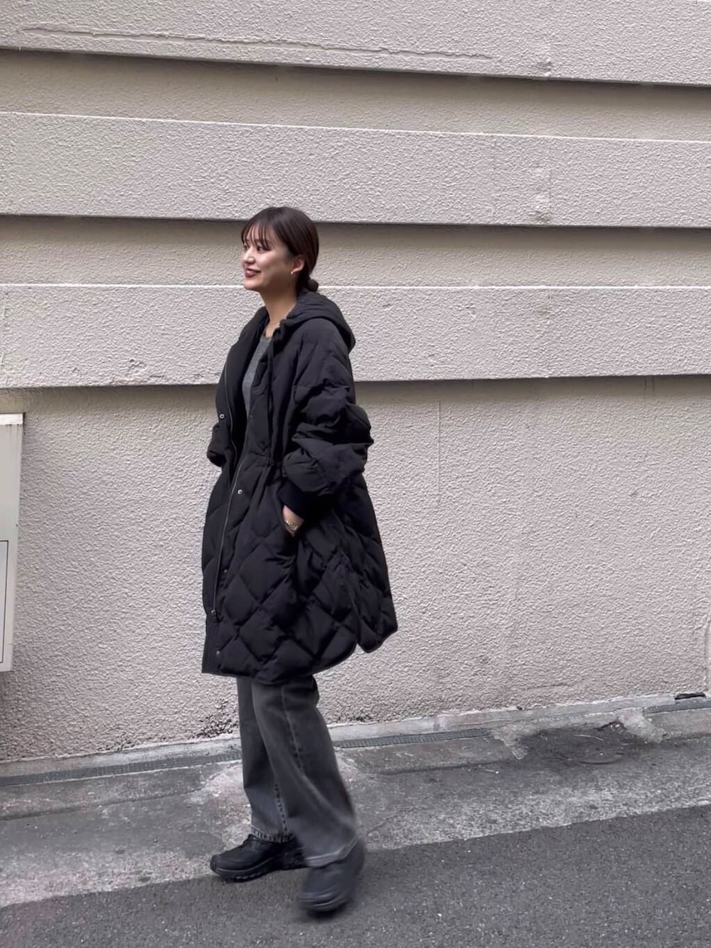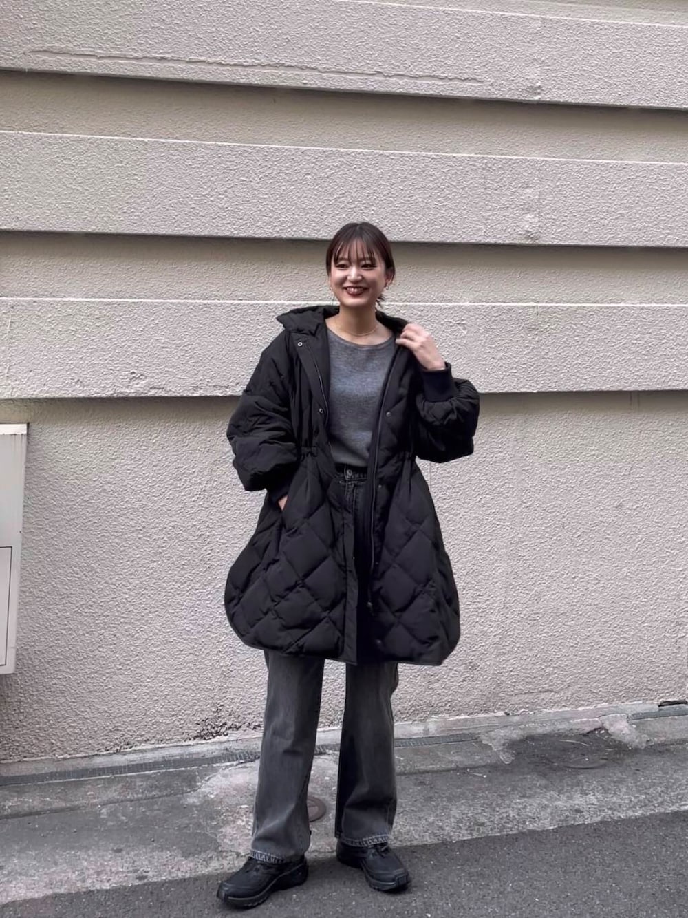 ウエスト絞れるデザインでスッキリした印象に😌