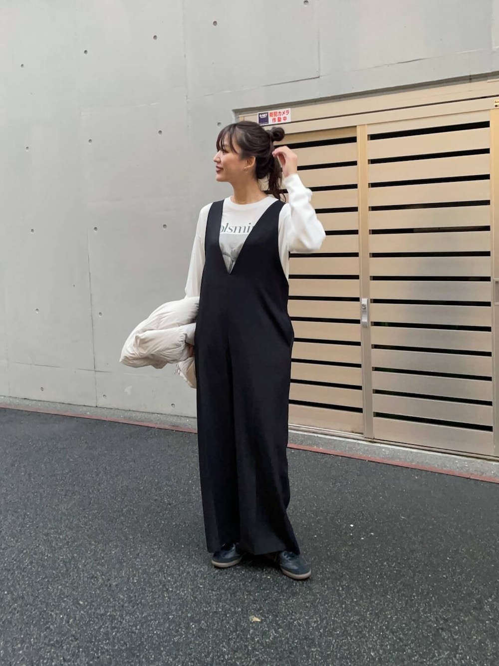 Vネック深めのオールインワンはカジュアルになりすぎずおすすめです✌🏻