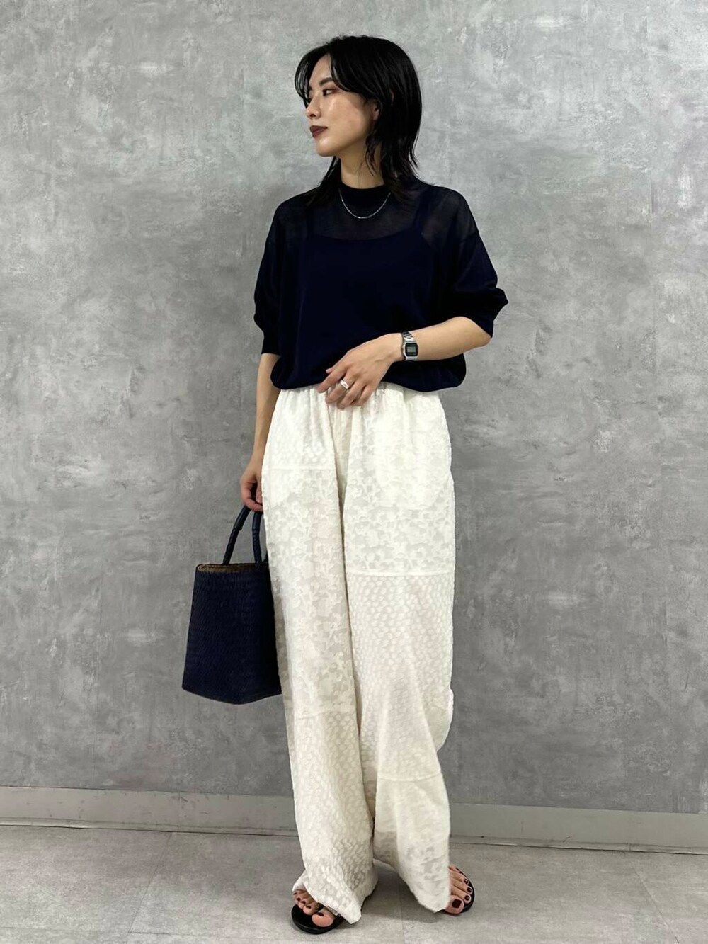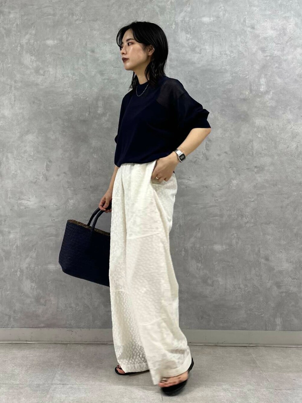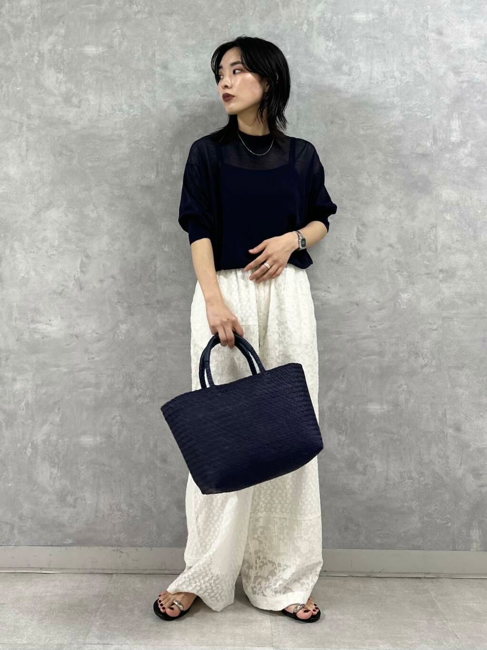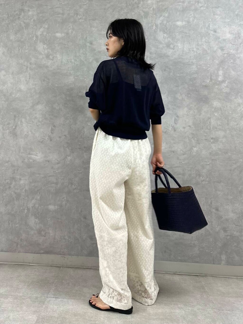 シアー素材のニットは通気性もよく、上品な透け感で着ていただける素材感です。