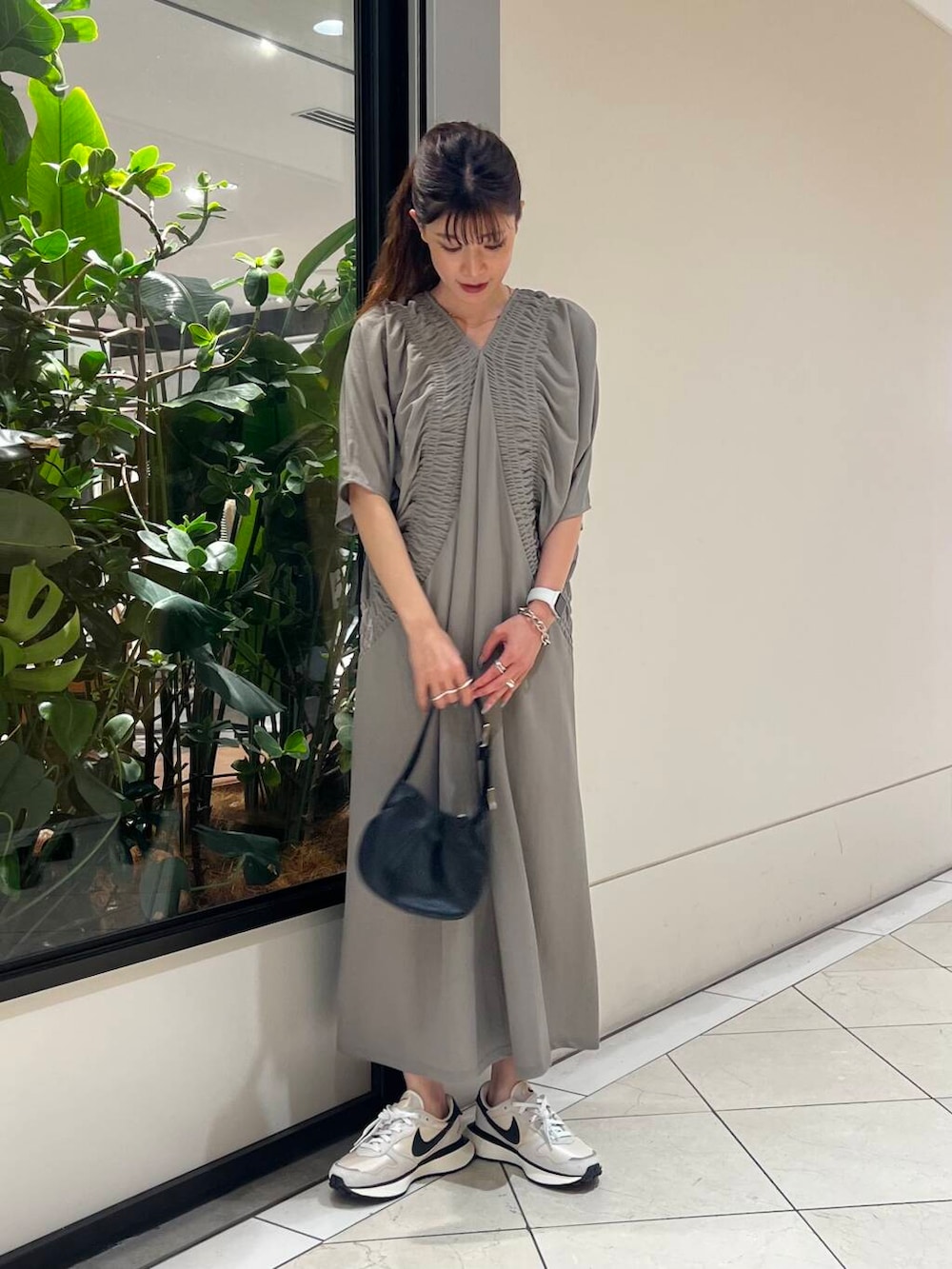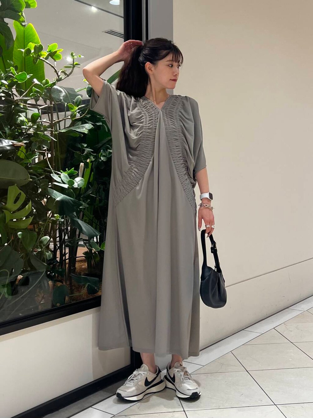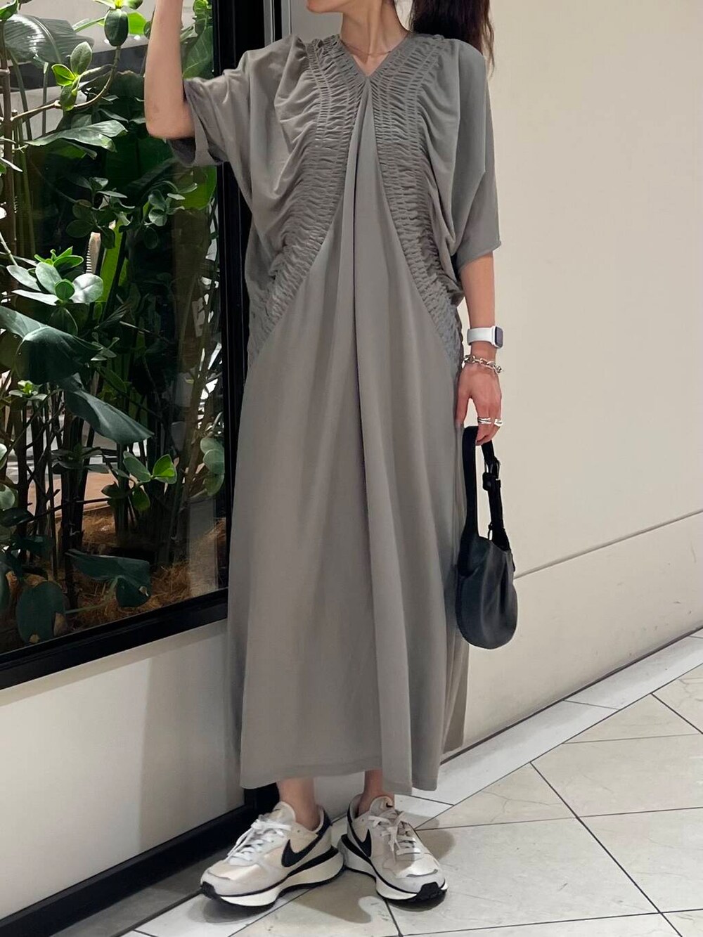 シャーリングのデザインが、一枚で決まるワンピース👗✨